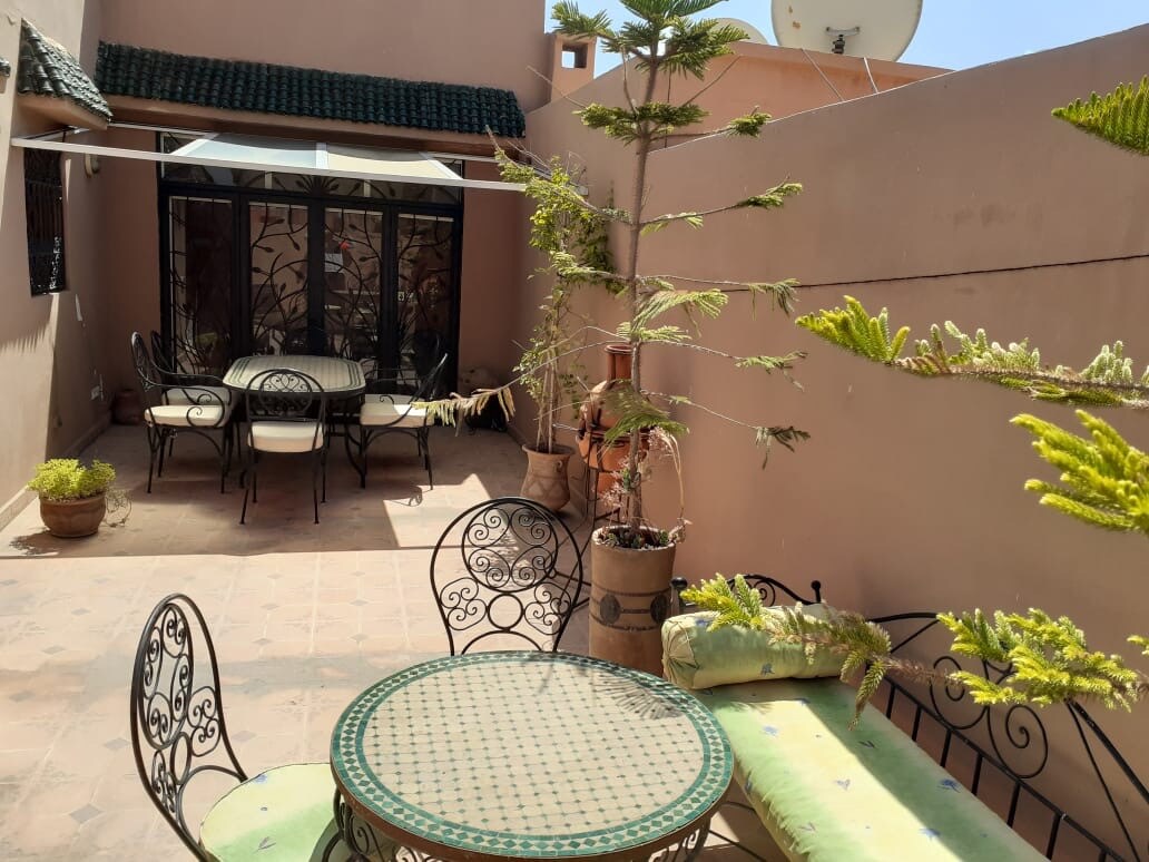 Marakeş'in medinesinde, sessiz bir alanda, çarşıya sadece birkaç dakika ve Jemaa El Fna'ya 12 dakika mesafede yer alan riad, 2 ısıtmalı havuz, jakuzi, hamam ve masaj odası ile bir huzur cennetidir. Fas'ın çağdaş konforunu ve özgünlüğünü birleştiren kablosuz internet erişimi. Özel banyolu, tamamen yenilenmiş, her biri uzlaşmacı bir zarafet ve ayıklık ile kişiselleştirilmiş 5 klimalı odamız. Sizi birkaç gün içinde Marakchi olmaya davet ediyoruz.