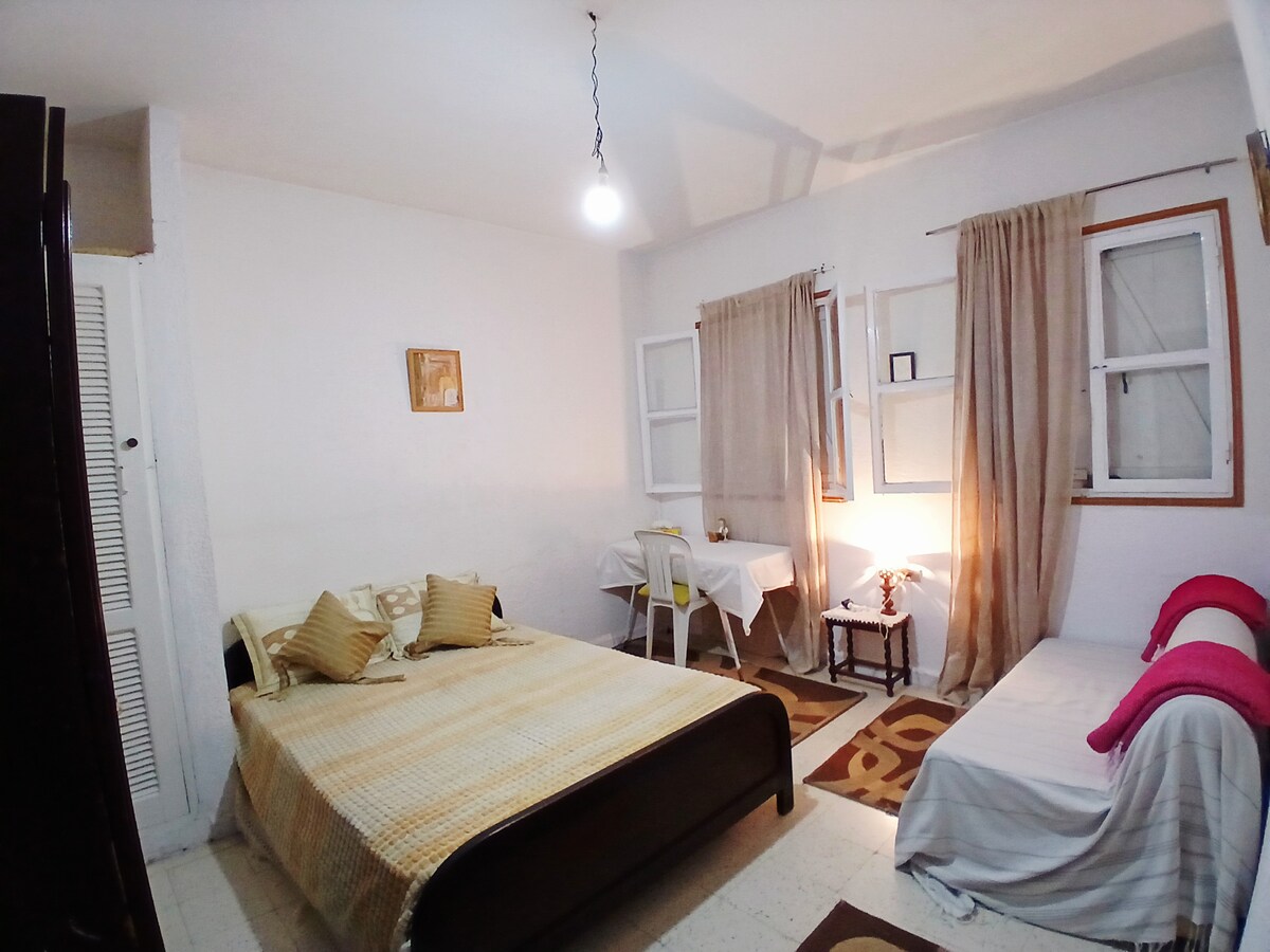 Gerçek Sousse'yi deneyimleyin! Şık eski kasaba dairemiz tarihi medinenin göbeğinde, limana, çarşıya ve yerel kafelere sadece birkaç dakika mesafededir. Otantik Tunus tarzı, tam donanımlı mutfak, sessiz yatak odası ve kablosuz internet bağlantısı. Tarihi, kültürü ve gerçek hayatı hissetmek isteyen seyahatseverler için ideal. Merkezde. Güvenli. Gerçek. Sousse'daki evinize hoş geldiniz!