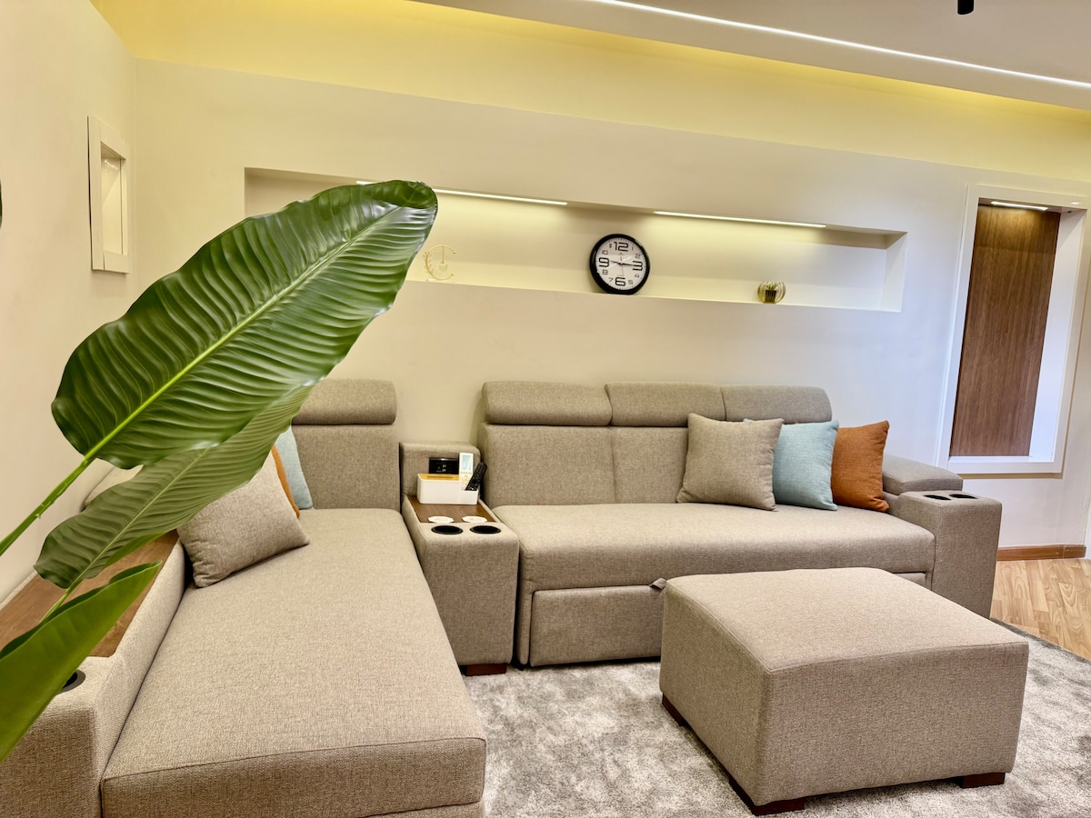 2 yatak odası( king boy yatak ve 2 tek kişilik yatak) ve biri sıcak su küvetli büyük 2 banyosu ve ayrıca akıllı samsung TV, yemek masası alanı, büyük bir mutfak ve ihtiyacınız olan tüm olanaklara sahip geniş bir yaşam alanı olan 2 yatak odası (king boy yatak ve 2 tek kişilik yatak) ve 2 banyosu ile dinlendirici bir tatili deneyin. Sessiz ve huzurlu bir arazi bahçesi manzarası... tüm gün ücretsiz park alanı ve Ünite için asansör, kart oyunları da verilir, 3 dakika yürüme mesafesinde restoranlar, kafeler, içecek dükkanları ile tüm sokağı bulacaksınız. burada eğlenin
