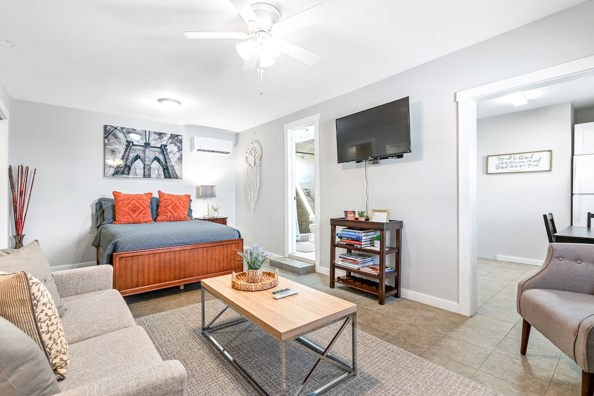 Tampa'nın Seminole Heights bölgesindeki 910 fitkarelik dairemizde zarafeti ve konforu keşfedin. Ev konforuyla otel lüksü sunan bu yer, Starbucks'a birkaç adım ve önemli yerlere birkaç dakika uzaklıktadır: Havalimanına 17 dakika, Tampa Üniversitesi'ne 12 dakika, Raymond James Stadyumu ve Ybor City'ye 15 dakika, şehir merkezine 9 dakika ve Amalie Arena'ya 12 dakika. Hem sakin konaklamalar hem de şehir keşfi için mükemmel.