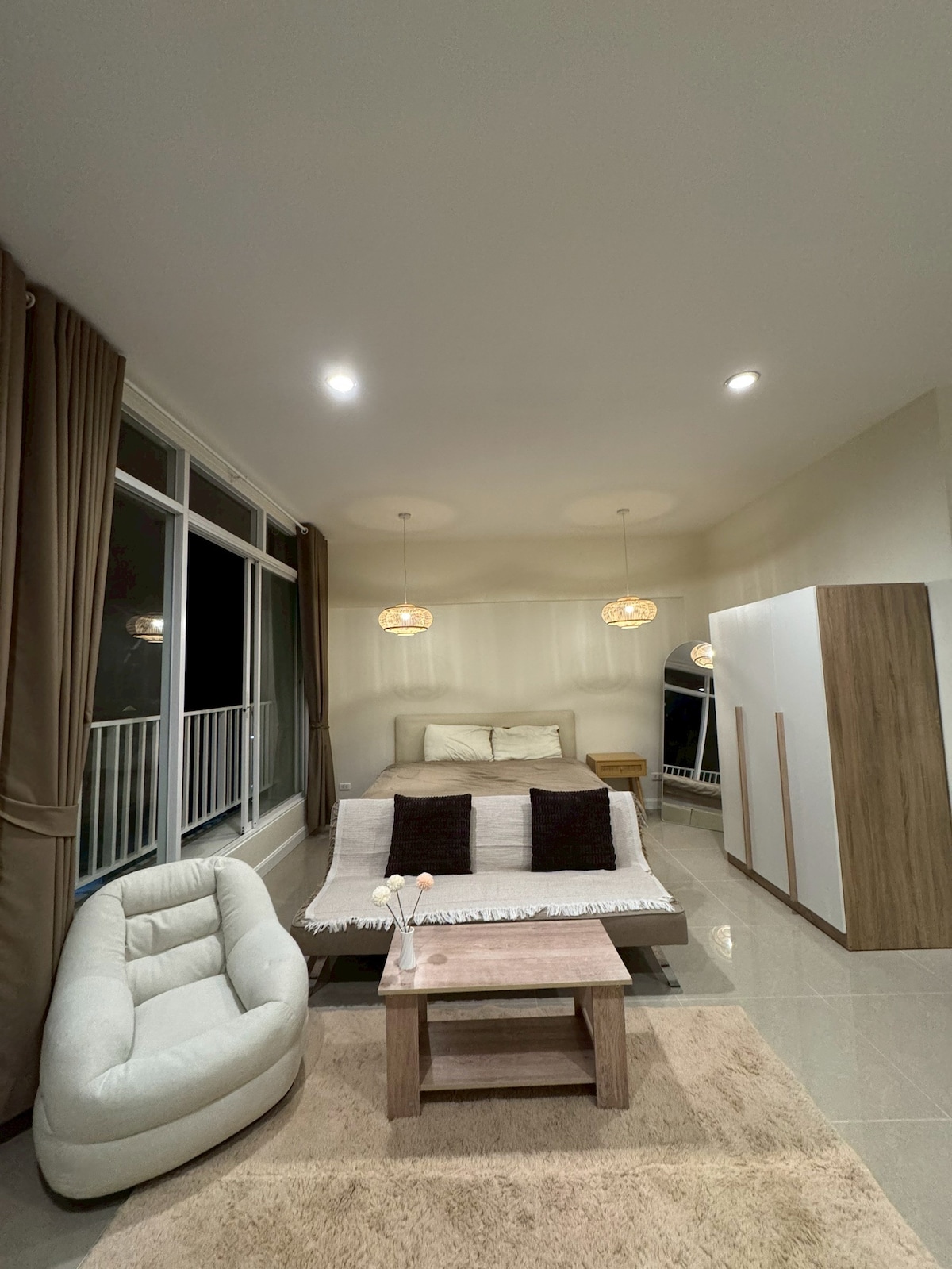 Patong şehrinin ortasında balkonlu tatlı bir oda