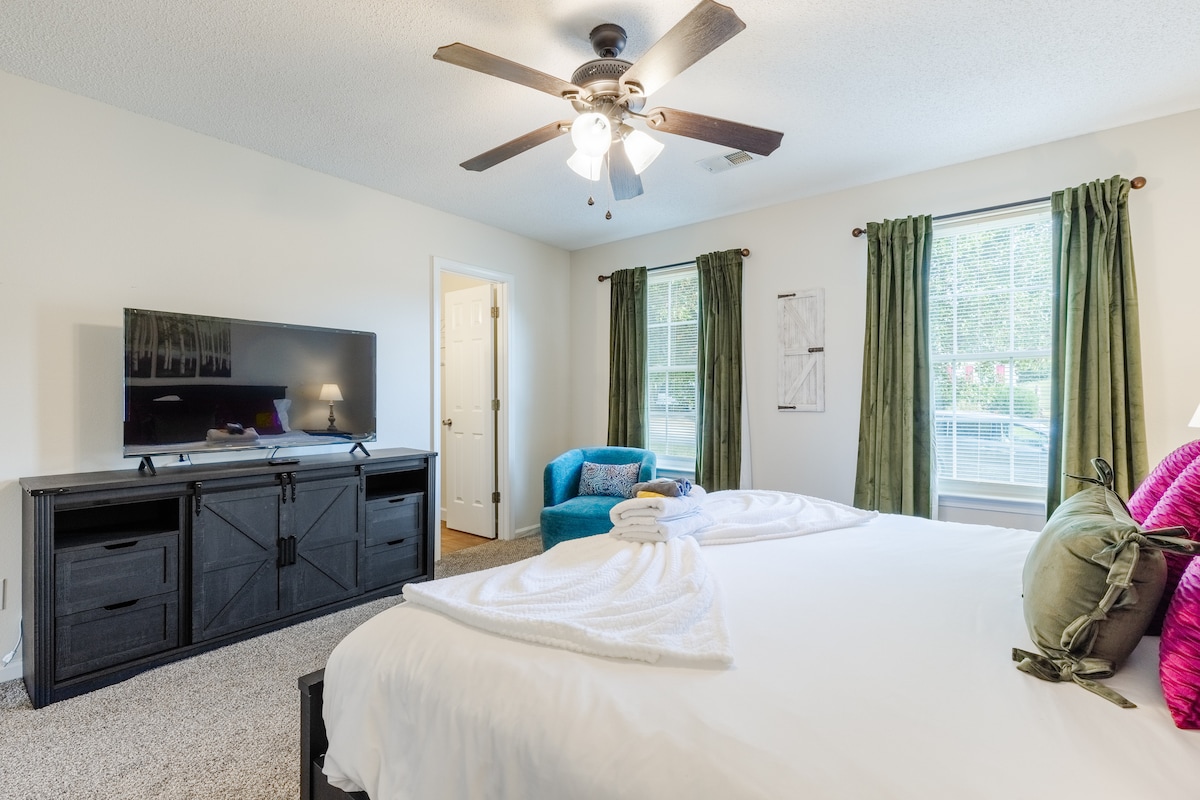 Suite Caroline'a adım attıktan sonra endişelerinizi geride bırakın! Bu geniş dubleks Greer Spartanburg ve Greenville yakınında bulunuyor ve tüm aile için bolca yere sahip. Ana yatak odasında büyük boy bir yatak ve ebeveyn banyosu vardır. 1. misafir odasında queen yatak ve tam donanımlı bir banyo vardır. Ön odadaki yatak odasında ikiz tam ranza ve masa alanı vardır. Oyuncak ve kitaplarla dolu çocuk alanı. Bu odanın dolabı yoktur, ancak yatağın altında bol miktarda depolama alanı vardır. Arka verandada açık oturma alanı ve gazlı ızgara bulunmaktadır.