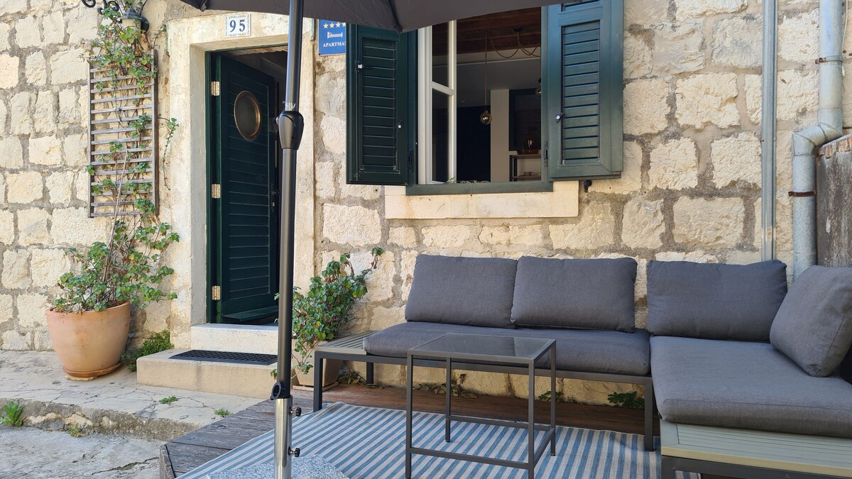 Veig Palace four-star apartments are two ("twin") new luxury studio apartments on two floors. They are designed to accommodate two people, and consist of a bedroom, bathroom and living room with kitchenette, and the walled courtyard, which is a rare privilege of private accomodations in the explicit city center.They are located in the center of ancient part of town at 250 m from the Diocletian palace.