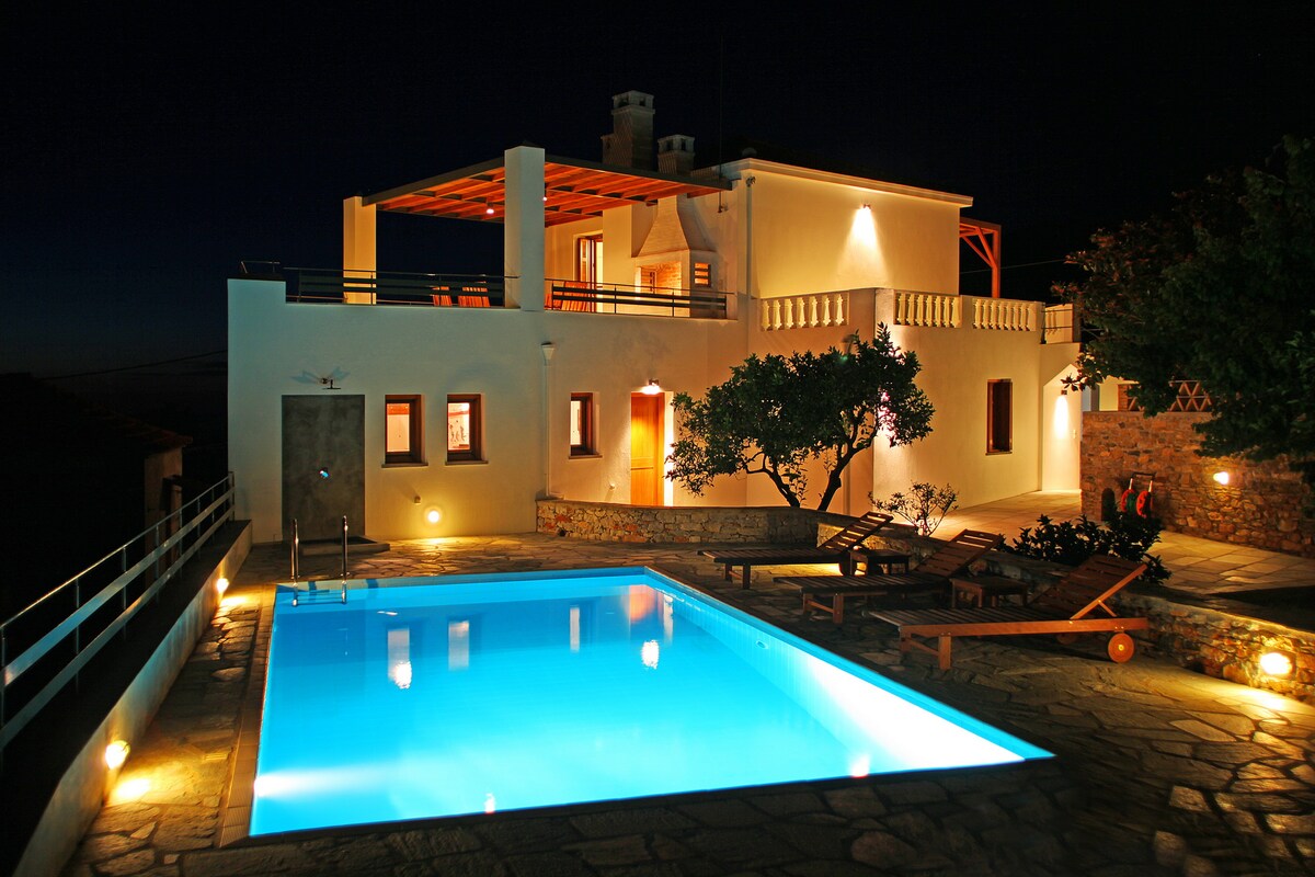Yeşil renkte badanalı duvarları ve klimalı iç mekanıyla Villa Erato, geleneksel Yunan adası tarzını ve modern konforunu yansıtıyor. Villa Erato'nun darbesi, büyük bir verandaya açılan Fransız kapılarıdır. Buradan villanın dikdörtgen havuzuna ve Palouki Dağı'nın yeşil yamaçlarına bakabilirsiniz. Tekerleklerle kum ve çakıl Glysteri Plajı'na ulaşmak birkaç dakika sürer.