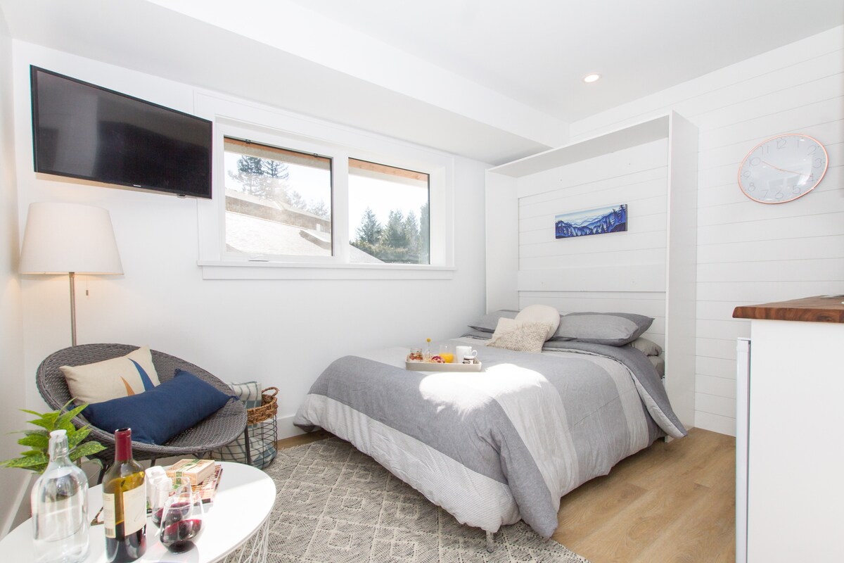 Özel girişi ve kapınızın önünde panoramik dağ manzarası olan güzel stüdyo süitimizde lüks içinde dinlenin. Burası, yakınlardaki birçok yürüyüş ve dünya standartlarında dağ bisikleti parkurlarını keşfetmek için harcanan bir günün ardından rahatlamak için mükemmel bir yerdir. Bu, çiftler, macera meraklıları, iş için veya yalnız seyahat edenler için ideal, geniş bir odadır. En fazla 2 yetişkin ve 1 çocuk için uygundur. Whistler'a sadece 40 dakika, Vancouver'a 45 dakika mesafededir.