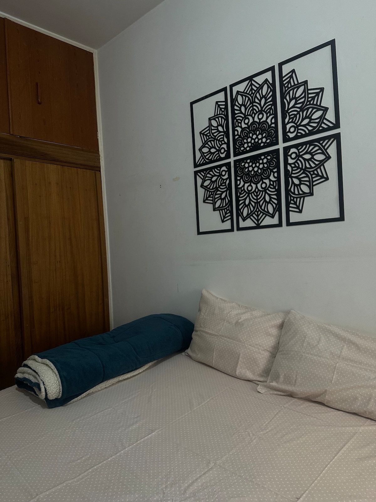 Mekânın tamamı. Daire ferah, samimi, düzenli, iyi havalandırılmış ve sabah güneşiyle aydınlık. Yatak odasında çift kişilik yatak (süper premium euro yatak) ve geniş bir dolap bulunmaktadır. Oturma odası büyüktür, bir yemek masası, çekyat (çift kişilik) ve bitkiler ve hamak bulunan bir balkon vardır. Mutfak tam donanımlıdır, gerekli tüm mutfak aletleri vardır. Banyo yenilenmiştir ve 220 V duşu vardır. Odada klima, bir tavan vantilatörü ve taşınabilir bir yer vantilatörü vardır.