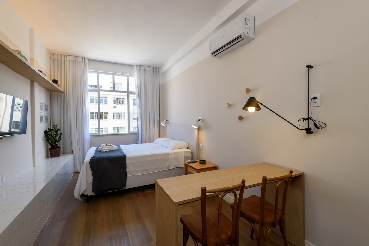 Mekanımız 2022 yılında yenilenmiştir. Sofistike ve modern bir tasarımla, yalnızca AIRBNB kullanımı için tasarlanmıştır. Gece uykunuzu garanti etmek için tüm detayları düşündük: karartma perdeleri, queen yatak ve split klima Mekânda ayrıca tam donanımlı bir mutfak, çalışma alanı, gazlı duşlu geniş bir banyo bulunmaktadır. Flamengo'nun kalbinde stratejik bir konuma sahip olan semt, ana turistik noktalara kolay erişim ve ulaşım sunmaktadır.