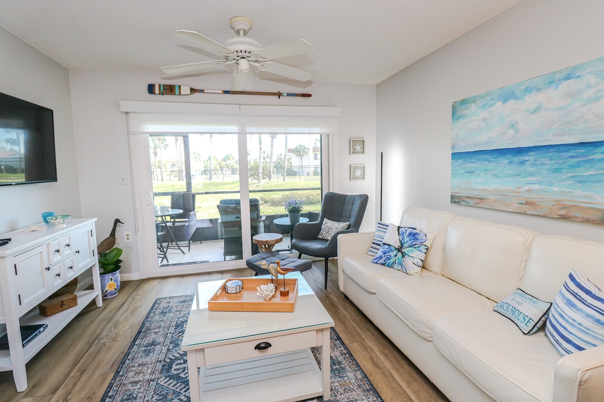 Seaside at Anastasia C101 is a 3-bedroom, 2-bathroom ground floor unit within walking distance to the gorgeous beaches of St. Augustine, the local pier, and several local restaurants, coffee shops, and small businesses. You are sure to have a great stay in this beach condo with all of the nearby activities, sunshine, and history. Features: Walking distance to St. Augustine Beach A short drive to historic downtown St. Augustine Screened in private balcony Coastal decor King size bed in master be
