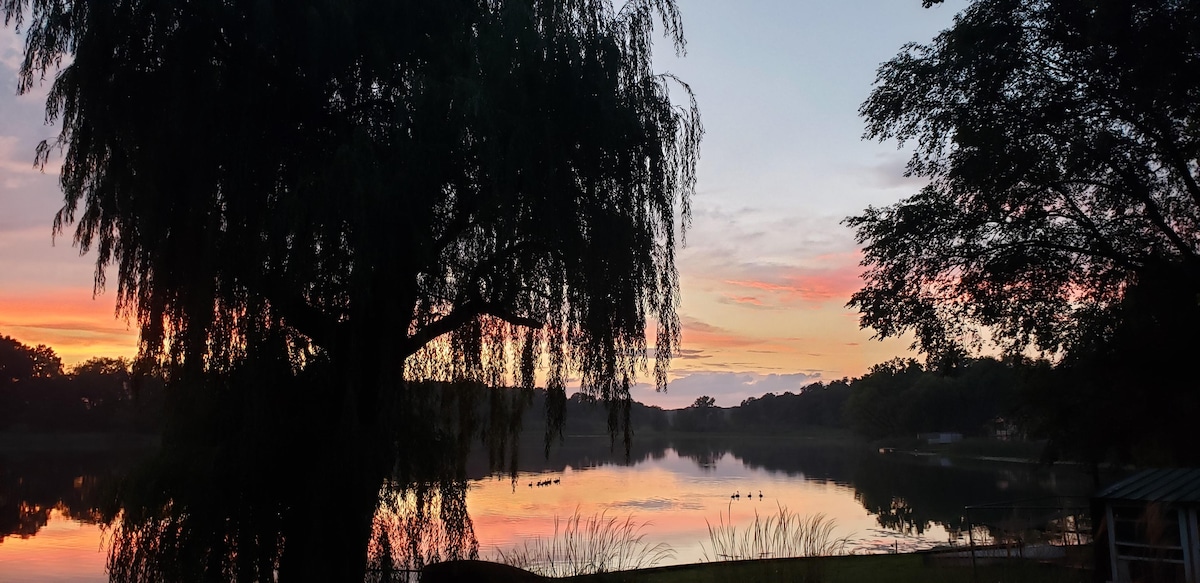 Üç tarafı suyla çevrili bir yarımadanın tepesinde özel ve huzurlu bir ev! Geniş bir arkadaş ve aile toplantısını ağırlamak için güzel bir ortam. Her taraftaki tam boy pencerelerden gün doğumunu ve gün batımını izleyin! Sahilde balık tutarken ateşin yanına oturun. Tüm kolaylıklar ve eğlence seçenekleri için Kalamazoo'ya 30 dakikadan az ve Three Rivers'a 10 dakika mesafede. Bu evin sonbahar, kış, ilkbahar ve yaz aylarında paha biçilmez manzaraları var! Keyfini çıkarın!