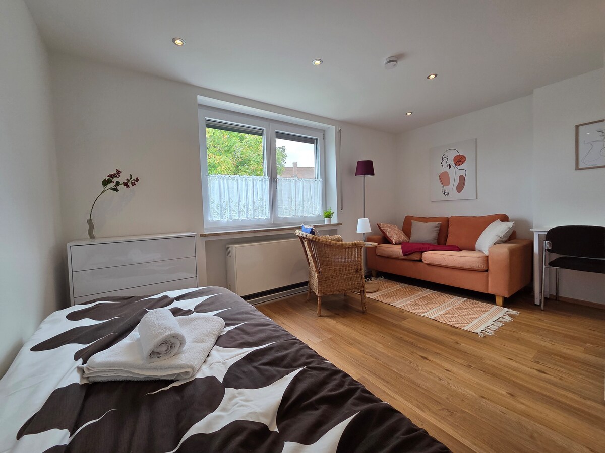 Modern iki odalı dairemizde küçük bir yatak odası, çekyatlı bir oturma odası, tam donanımlı bir mutfak, bir depo, yağmur duşlu modern bir banyo ve iki güneşli teras bulunmaktadır. Dairenin bahçe üzerinden kendi erişimi vardır. Zar zor seyahat edilen sokakta park etmek mümkündür. Kırsal konum nedeniyle araba tavsiye edilir. Münih'e yaklaşık 35 dakikada, dağlara arabayla 50 dakikada ulaşılabilir.