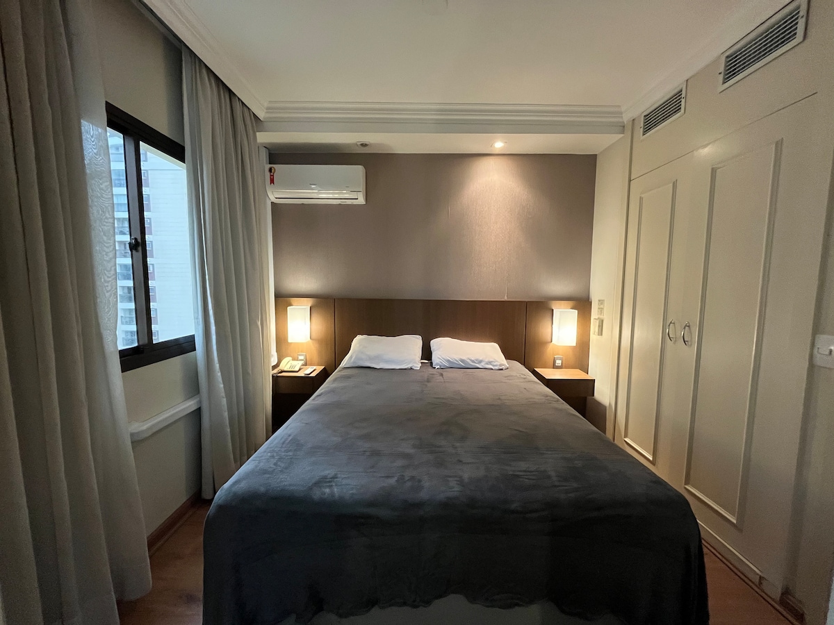 Daire Grand Mercure Itaim'in içinde bulunmaktadır. Yatak odasında çift kişilik yatak, oturma odasında kanepe, 1 adet 42 inç TV, çalışma masası, balkon, banyo ve kiler. Bir otelin ortak alanlarının rahatlığıyla evinizin konforunu hissedin! Salonda yüzme havuzu, sauna, fitness merkezi, kafeterya ve restoranın yanı sıra oda servisine güvenebilirsiniz. Hiçbir şeyi kaçırmamanız için harika bir konuma sahip bu eşsiz yerde kalın.