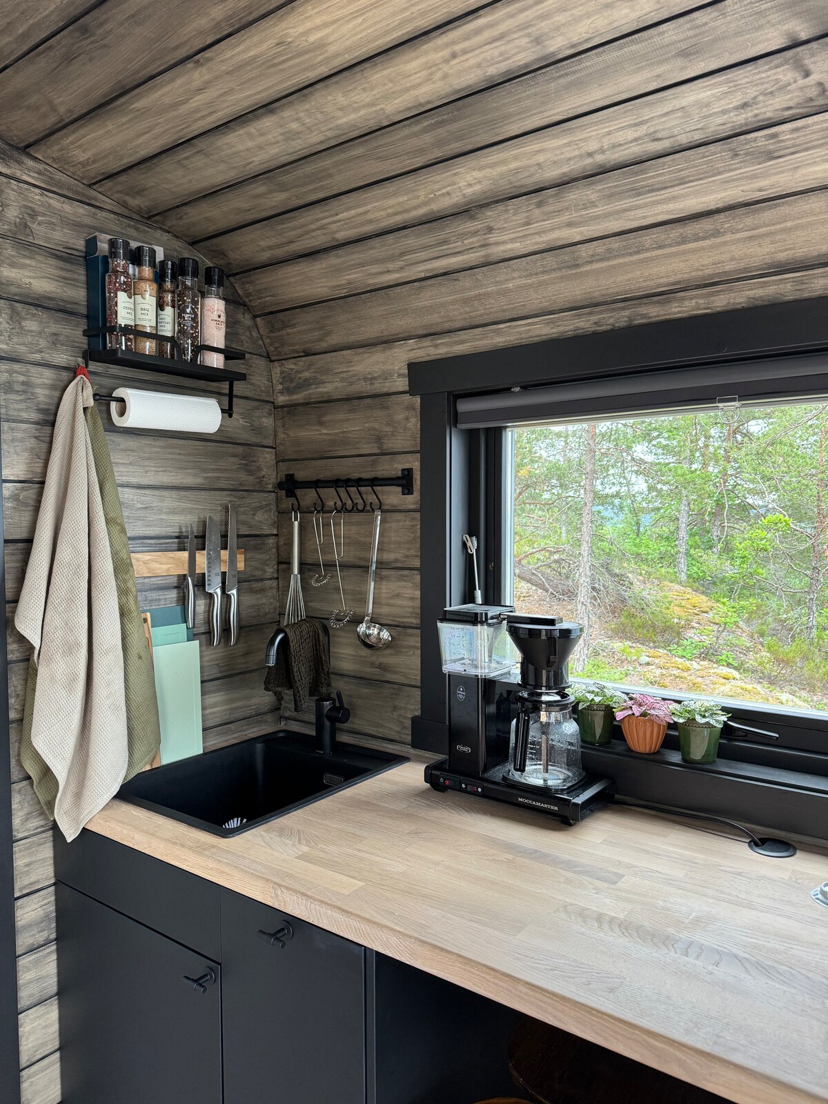 Rahat kulübe, denize yakın, deniz manzaralı ve güzel açık alanlar. Ana kabinde oturma odası, yemek alanı ve mutfak bulunmaktadır. Ayrı bir odada 2 yatak odası (2+2 yatak) ve yanmalı tuvalet bulunmaktadır. Her iki taraftaki büyük cam pencereler aydınlık ve açık bir atmosfer sağlar. Oturma odasında. Ayrıca, 2 aile ranzası ve bir TV (yalnızca Apple TV) bulunan 15 metrekarelik bir ek bina bulunmaktadır. Önerilen misafir sayısı: 4-6 yetişkin + çocuk. Toplamda en fazla 8 kişi. Bunun nedeni yanmalı tuvalettir.