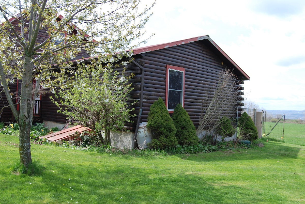 Log Cabin Apartmanı, tam mutfak, kahve ve çay mevcut, fiber optik kablosuz internet bağlantısı ve kablolu TV, çamaşır makinesi/kurutucu, pelet sobası ve klima. Açık hava ateş çukuru odunlu, barbekü ızgarası. Finger Lakes Milli Ormanı'na 5 dakika, Watkins Glen'e 15 dakika mesafededir. Seneca Lake Wine Trail'e 1/2 km mesafededir. Hevesli kuş gözlemcileri için mükemmel bir alan. Gölün karşısından güzel bir manzara. Sevimli keçilerle oldukça kırsal bir ortam. Köpek ve kedi dostuyuz. Ve gerekirse küçük bir ücret karşılığında özel bir köpek kulübesi mevcuttur.