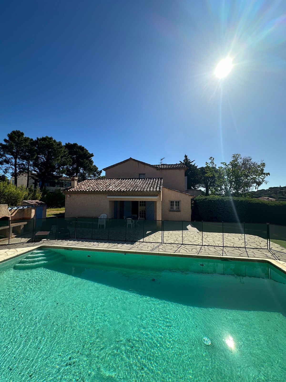 SAINTE - Maxime'de NADİR: MERKEZE YAKIN villa, DENİZ KENARI. İstek üzerine ısıtmalı havuz. PANORAMİK DENİZ MANZARASI. Yakın zamanda yenilenmiş 160 m² villa. + 1.000 m² arazi. Bahçe, pinpon masası, barbekü, otopark, klima, TV ve KABLOSUZ İNTERNET BAĞLANTISI... 5 yatak odası (sessiz, kaliteli yatak takımları) + 2 banyo. Sainte - Maxime'in merkezine 5 dakika, plajlara 5 dakika yürüme mesafesindedir. Güzel yürüyüşler ve yüzme için deniz kıyısına erişim. Dahil olan hizmetler: konaklama sonu temizliği, ev ve havuz çarşafları.