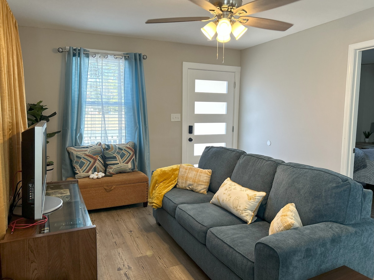 Discover your cozy Fayetteville retreat. Nestled in a secure, well-established neighborhood embraced by the beauty of nature you’ll find a bright 1 bed & 1 bath suite. It includes a generous TV and a convenient pull-out sofa bed. In a prime central location to both downtown and Fort Liberty, it is a perfect haven surrounded by trees. Charge your Tesla and get work done in an ideal workspace for your professional and creative endeavors. This space is the perfect blend of convenience and serenity.