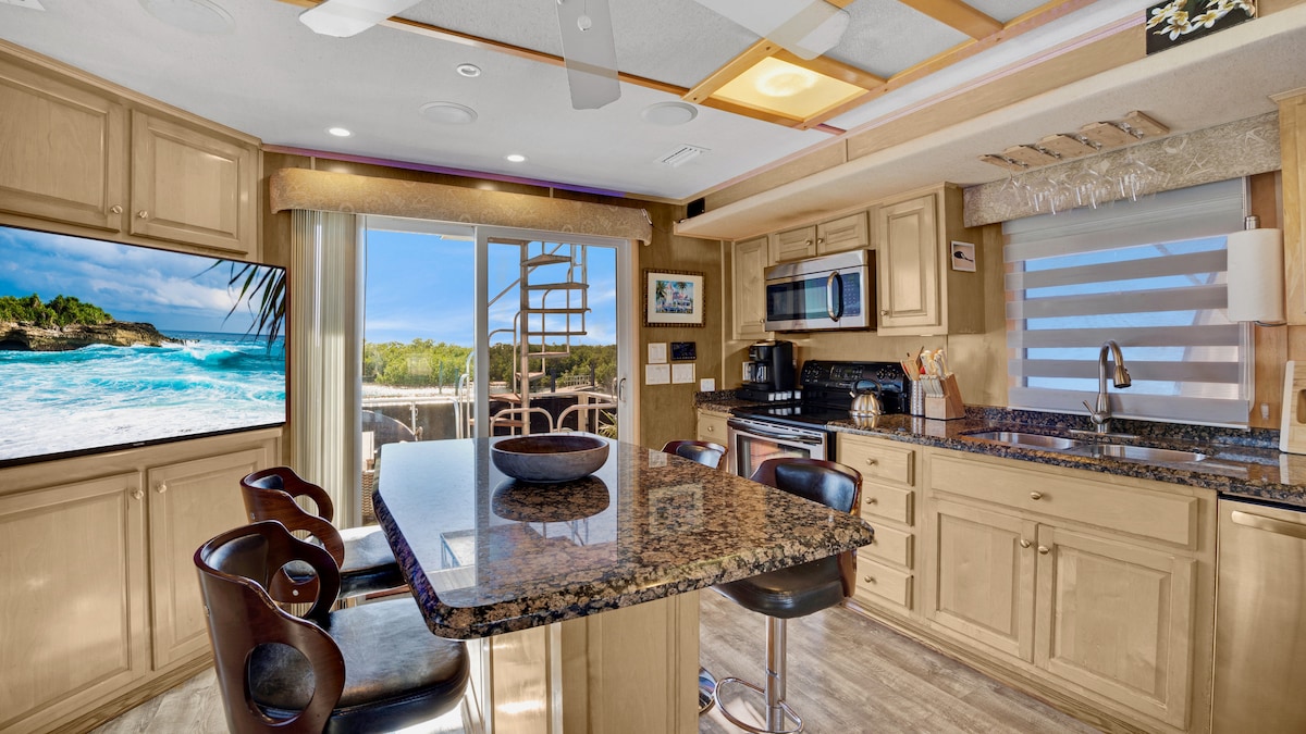 Suyun üzerindeki okyanus kıyısındaki tatil eviniz sizi bekliyor! Key West'in güzel berrak suyunun üzerinde konaklamasını deneyimleyin. Macera arayanlardan, sadece uzaklaşmak ve ada yaşamının tadını çıkarmak isteyen insanlara kadar herkes için küçük bir şey var. Arada sırada bir manatee de dahil olmak üzere her türlü deniz yaşamını göreceksiniz! Verandadan muhteşem gün batımları, çeşitli deniz kuşları yemeklerini yakalıyor ve hatta ara sıra askeri bir jet oluşumu. Boa dışında kano/kürek sörfü yapmak için birçok harika alan.