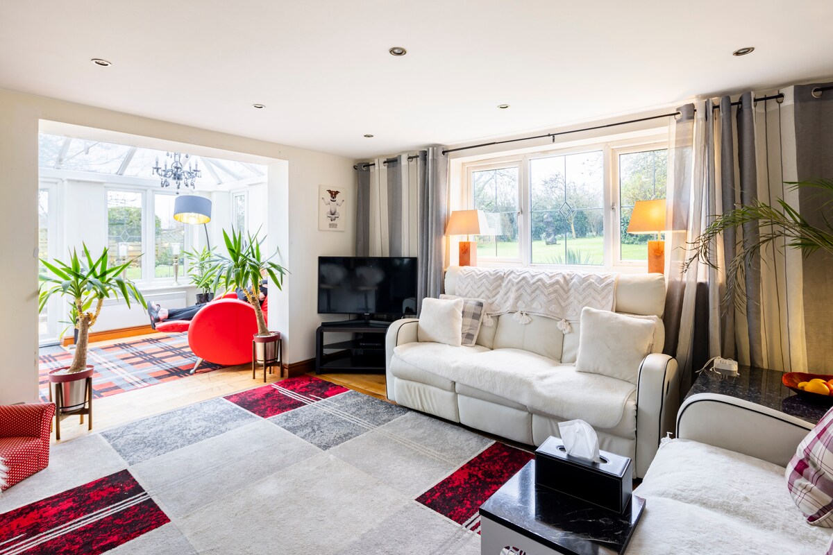 Güzel dekore edilmiş ek binamız, kendi ön kapısı, lüks kral yatağı, ebeveyn banyosu, küçük FreeSat TV'si ve ocak, mikrodalga fırın ve buzdolabı dahil mini mutfağı ile tamamen bağımsızdır. Ayrıca veranda kapılarından geniş bahçemize erişim de bulunmaktadır. Bebeklerin hoş karşılandığını lütfen unutmayın, lütfen kendi seyahat beşiğinizi getirin. Çok geniş, sessiz bir yolda ücretsiz sokak park yeri mevcuttur.