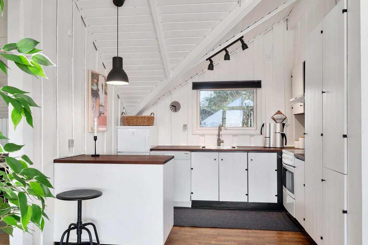 Huzur ve dinlenme için mükemmel bir tatil evi. Bu tatil evi günlük strese ara vermek isteyenler için idealdir. Yıl boyu dinlenebileceğiniz bir yer. Tatil evi şunları sunar: - Sauna - Sıcak küvet - Sıcak ve soğuk su ile açık hava duşu - Benzersiz açık alanlara sahip özel ve gözlerden uzak alanlar Plaj sadece 1,2 km uzaklıktadır. Rahatlık ve rahatlık: - Odun sobası ve klima - Açık hava mutfağı. - Pizza fırını ve ızgara -5G kablosuz internet bağlantısı ve Chromecast - Ücretsiz kullanabileceğiniz bisikletler