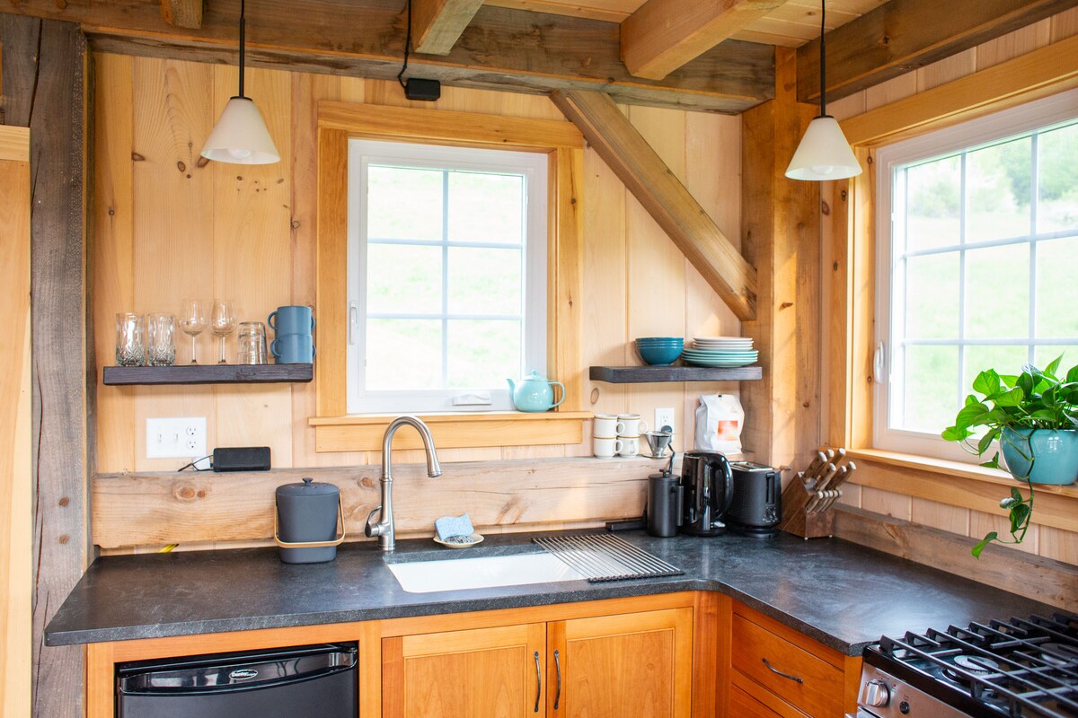 Vermont'un Green Mountains ve inişli çıkışlı eteklerine bolca erişimi olan rahat bir kütük kulübesine sığının. Woodstock ve Quechee'ye kısa bir sürüş mesafesinde olan kulübe, sadece bir mil uzaklıktaki South Royalton kasabasına bakan güneye bakan güzel manzaralara sahip sessiz toprak yol üzerinde yer alıyor. Kaynaktan beslenen gölet kulübeden birkaç adım ötede, yüzmeye gelin! Orman ve tarlalardaki patikaları takip edin ve Vermont'un bu bozulmamış parçasının tadını çıkarın.