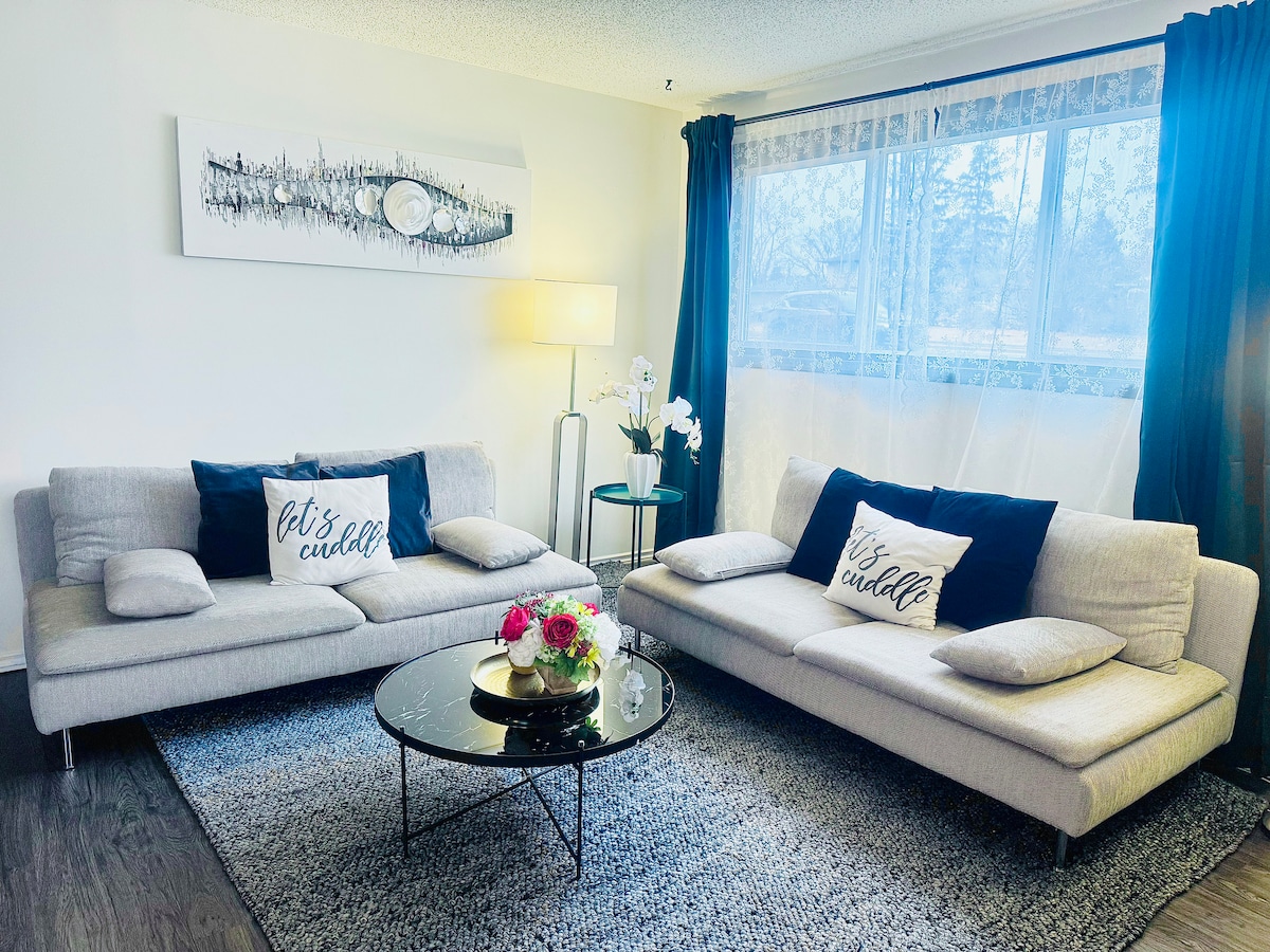 Bütçeye duyarlı seyahatseverler için mükemmel, rahat ve uygun fiyatlı dairemize hoş geldiniz! İş için seyahat ediyorsanız veya Rogers Place'te bir etkinliğe katılıyorsanız burası Rogers Place, Grant MacEwan Üniversitesi ve Edmonton CityCentre alışveriş merkezi ve restoranlarına birkaç dakika yürüme mesafesinde harika bir merkezi daire. ÜCRETSİZ OTOPARK Roger Arena 3 dakika yürüme mesafesinde Mac Ewan Üniversitesi 4 dakika yürüme mesafesinde Tren İstasyonu 3 dakika yürüme mesafesinde Bilginiz olsun: Burası şehir merkezinin en iyi konumu, biraz GÜRÜLTÜ ve YAYA TRAFİĞİ olacak.