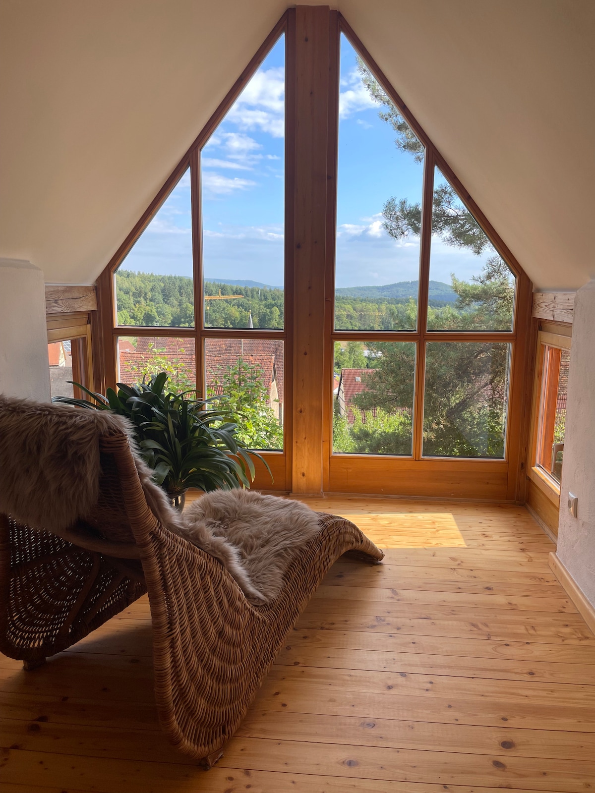 Yeni tasarlanan tavan arası daire, Bamberg'in sessiz bir banliyösü olan Wildensorg bölgesinde bulunmaktadır. Arabayla 10 dakika içinde katedrale ve merkeze ulaşacaksınız. Dağın üzerinden yaklaşık 40 dakika yürüyün. Şehir otobüsü her 30 dakikada bir çalışır Parlak ve samimi daire kendinizi rahat hissetmeniz için gereken her şeyi sunar. Yaz aylarında evin etrafındaki bahçede güneşli veya gölgeli bir yer de bulacaksınız. Mekansal koşullar nedeniyle bir duşun entegre edilmesi mümkün olmamıştır.