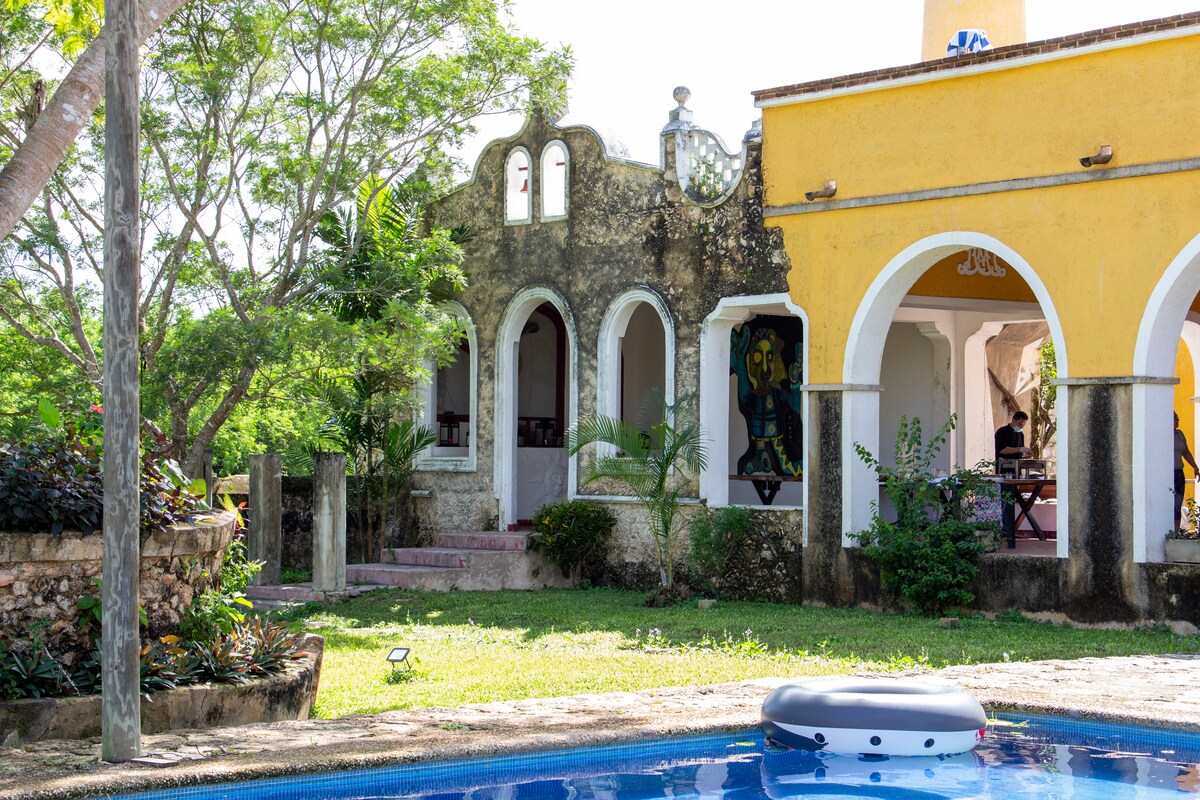 Huzurun nefes alabildiği bu evde dinlenin. Mérida ve Chichenitza'nın ortasında, hoş bir Yucatecan köyünde bulunmaktadır. 15 dakikadan kısa mesafede üç cenote ve bir lagün. Çok düşük fiyatlarla otantik Yucatecan yemekleri yemek için mükemmel yerleri ve geleneksel şenlikleri olan çok güvenli bir topluluk. Güneyde, güvenli yollarda ve büyük kültürel zenginlikle yerli topluluklara girebilirsiniz. Maya evlerinin karakteristik küçük kapıları.
