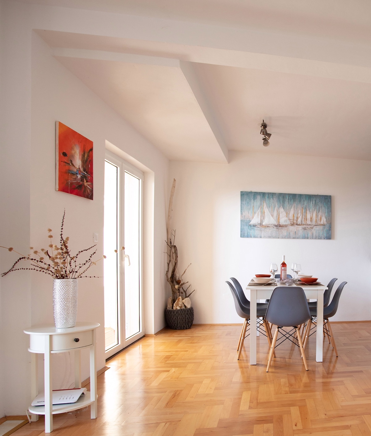 Zevkle tasarlanmış modern sahil çatı katı. Çatı katının geniş deniz manzarası ve modern olanakları, burayı mükemmel, romantik bir kaçamak haline getirir. Çatı katı, güzel ve sakin bir balıkçı köyü olan Sumartin'de bulunmaktadır. Huzurlu bir plaja 100 metre mesafededir. Köye yapılan akşam yürüyüşleri ve yerel halkla dolu sabah kafeleri, güzel bir Avrupa kaçamağı yapar. Birkaç restoran, postane, süpermarket, kafe bar bulabileceğiniz yerin merkezi yaklaşık 850 metre mesafededir. Yürüme mesafesi - 10 dakika.