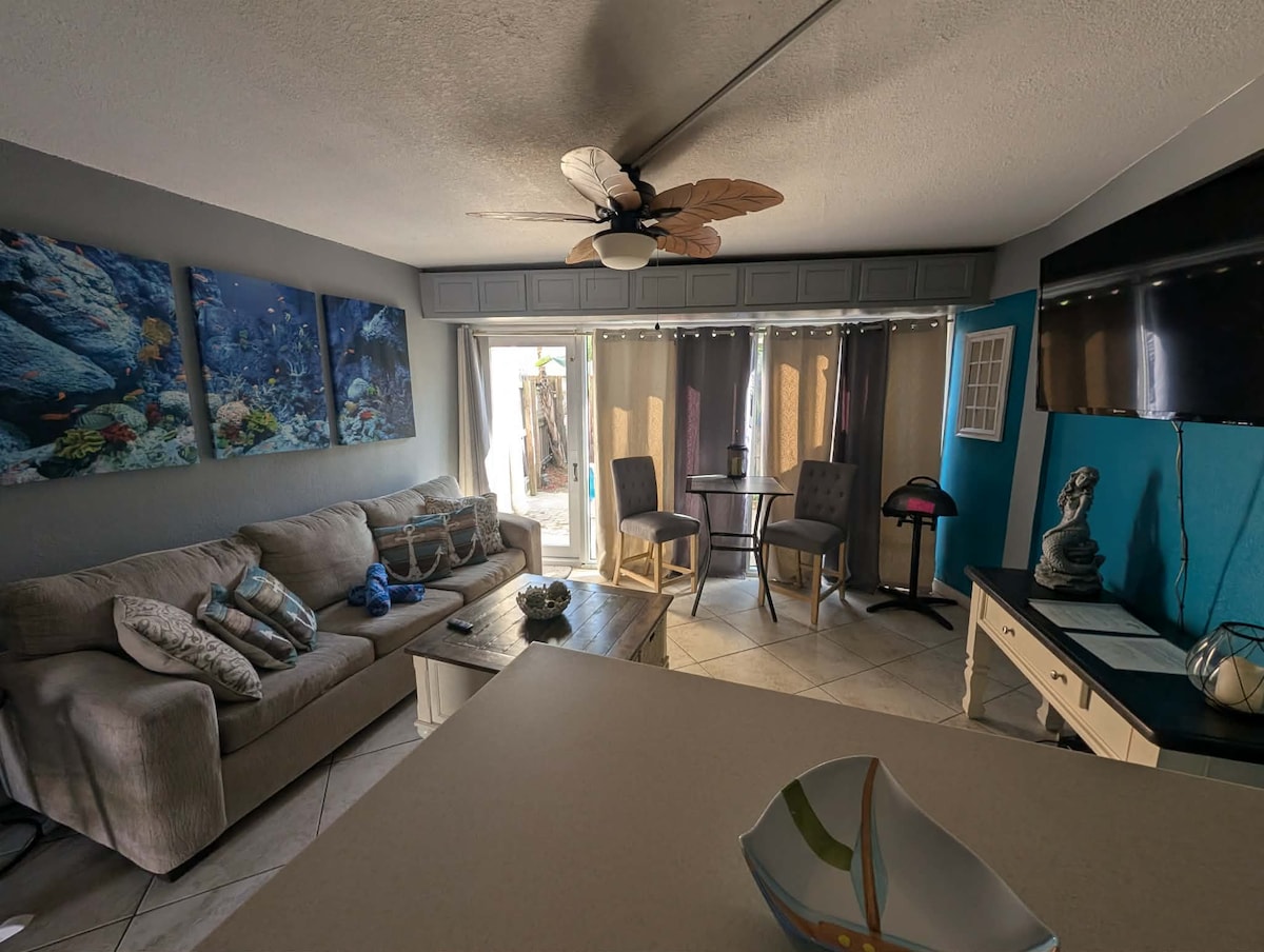 Denize ve havuza bakan özel bir balkonu olan, sahil kaçamağı için mükemmel, rahat bir tek yatak odalı daire olan Sea's Retreat'e🌊 hoş geldiniz. Mekânımız konforlu ve sorunsuz bir konaklama sağlamak için tam donanımlıdır. Daytona Beach'in göbeğinde yer alan bu yer, plaja, popüler turistik yerlere, yemek yeme, alışveriş ve eğlenceye birkaç adım uzaklıktadır. İster yerel manzarayı keşfetmek ister okyanus ve sahil havuzumuzun yanında dinlenmek isteyin, her türlü gereksiniminizi karşılıyoruz.