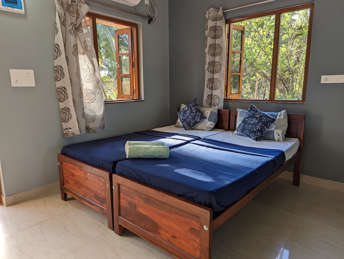 Rahatlayın ve içinizde huzuru hissedin! Mükemmel bir aile kaçamağı. Kendinizi evinizde olduğunuzdan daha iyi hissetmek için gelin ve bizimle kalın. Tam güç yedeklemesi ile kesintisiz kablosuz internet bağlantısının keyfini çıkarın. Misafir olarak gelin ve aile olarak ayrılın. Rahat AC dairesinde içiniz rahat eder!Hızlı bir atıştırmalık hazırlayın veya plaj kulübelerine gidin. Havuza atlayın veya denize dalın. 🌊 Sahilde koşuya çıkın veya tam donanımlu spor salonuna gidin! Güney Goa'nın benzersizliğini keşfedin ve huzurlu bir konaklama yapın. 😎