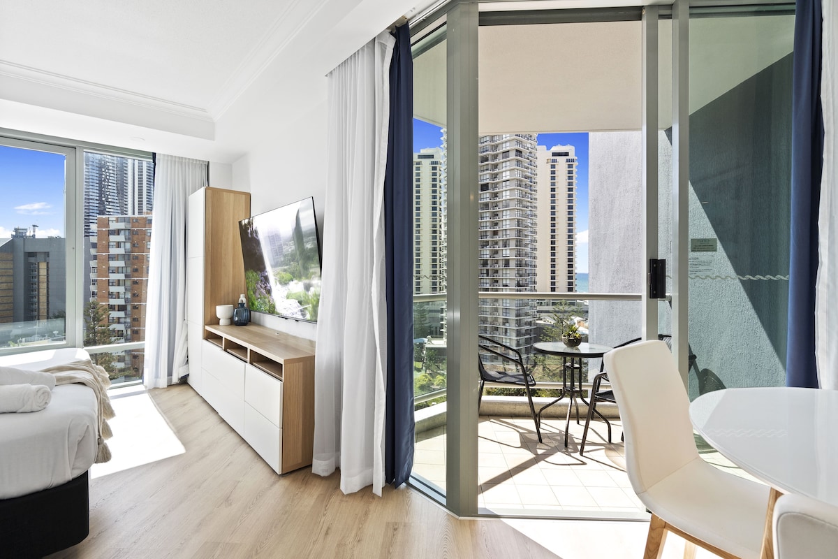 Yüksek bir katta yer alan sahil dairesi, duvardan tavana pencerelere, muhteşem okyanus manzaralı özel balkona ve yolun hemen karşısındaki Surfers Paradise plajına erişime sahiptir. Dairede yatak odasında bir çift kişilik yatak ve salonda katlanır çift kişilik çekyat bulunmaktadır. Tam donanımlı mutfak, yüksek hızlı kablosuz internet bağlantısı, klima, Netflix ve YouTube'lu TV'ler, ücretsiz park yeri ve tamamen özel çamaşırhane. Misafirler spor salonu, spa, sauna, havuz ve Havuzun yanında ve çatıda barbekü.