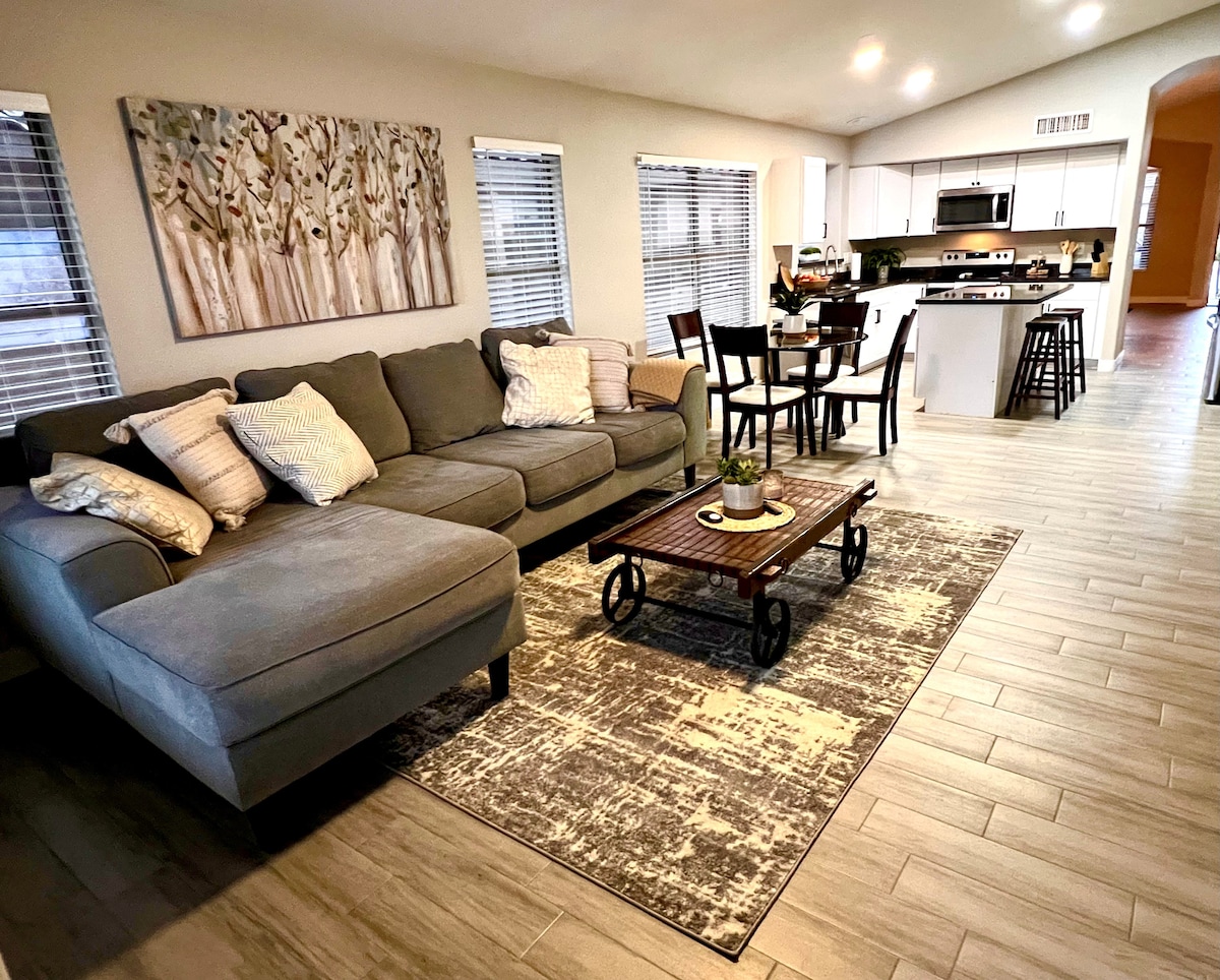 Arizona, Surprise'de bahar antrenman stadyumlarına, büyük otoyollara, piknik parklarına ve voleybol alanlarına yakın mükemmel bir konumda şık bir konaklamanın keyfini çıkarın. Bu modern Airbnb, tatiller, spor seyahatleri veya iş seyahatleri için ideal, konforlu ve iyi tasarlanmış bir alan sunuyor. Çağdaş yaşam alanlarında rahatlayın, yerel turistik yerlere kolayca ulaşın ve daha büyük Phoenix bölgesini kolayca keşfedin. Stressiz bir konaklama için konfor, konum ve modern olanakların mükemmel bir karışımı. EV HAYVANLARA VE SİGARAYA İZİN VERİLMEZ