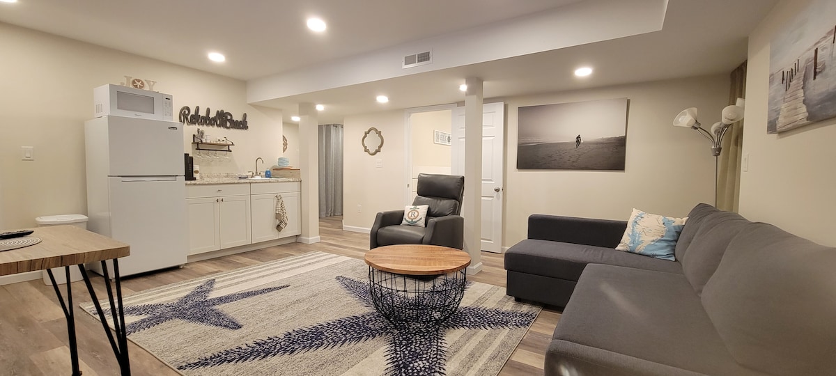 Route 1'in doğusunda, hem Rehoboth hem de Dewey plajlarına eşit uzaklıkta, yaklaşık 1/2 mil kolay bisiklet/yürüyüş mesafesinde. 2021 yılı için yepyeni olan bu tam donanımlı misafir süiti, özel giriş, ayarlanabilir çerçeveli büyük boy yataklı yatak odası, tam banyo, çamaşırhane ve küçük mutfak sunmaktadır. Bu ünitede ocak yoktur, ancak kolay plaj yemeği hazırlamak için mikrodalga fırın ve ekmek kızartma makinesi konveksiyon fırını/hava fritözü sağladık. Ayrıca barbekü için bir gazlı ızgara da bulunmaktadır. Bu ünitenin kesinlikle 2 yetişkinle sınırlı olduğunu lütfen unutmayın.