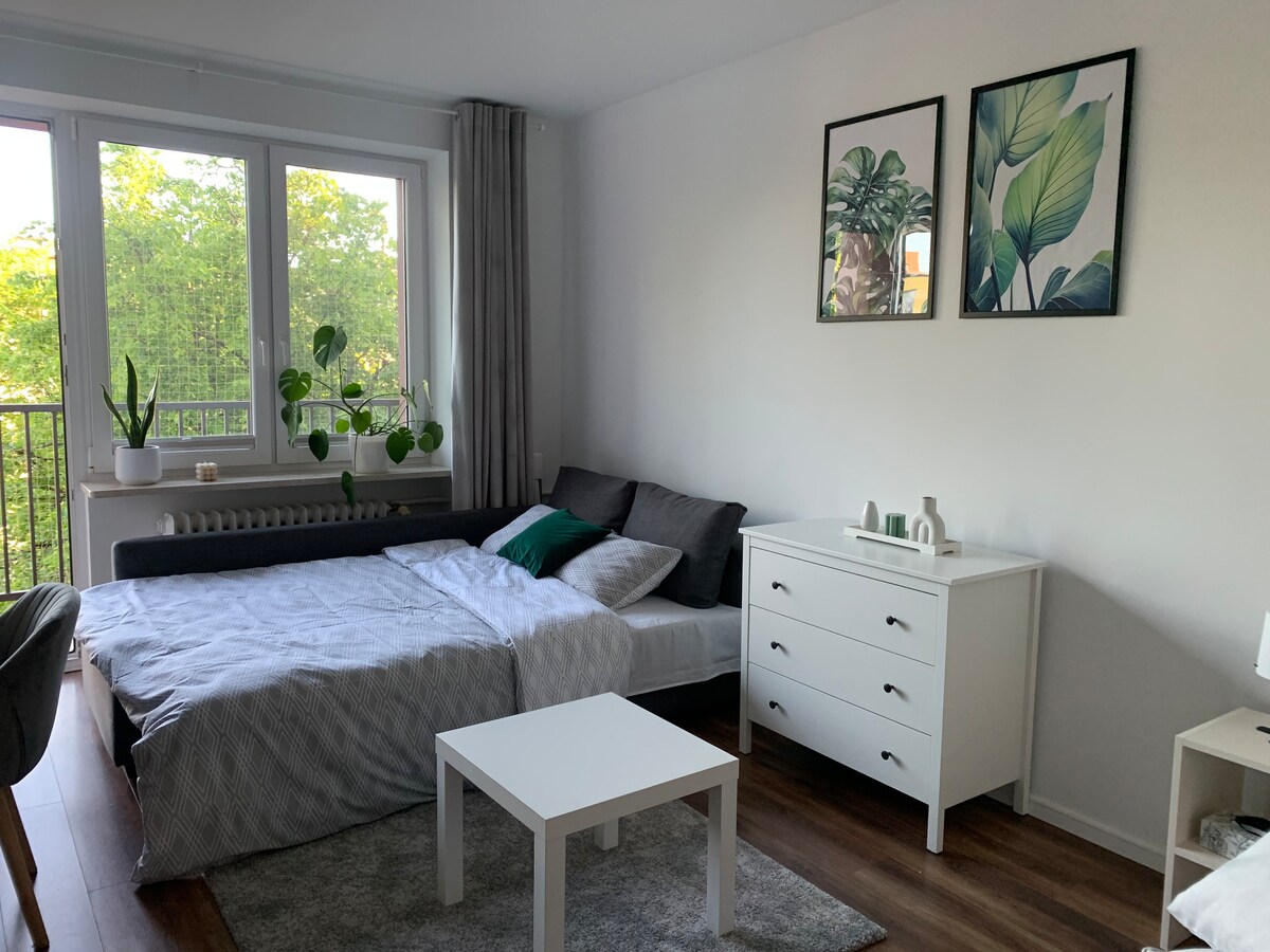 Zafunduj sobie odpoczynek i wyciszenie. Stylowy apartament w spokojnej okolicy 1,5 km od centrum miasta z dużym balkonem i bezpłatnym miejscem parkingowym. Self check in. Zlokalizowany na I piętrze trzy piętrowego, nowoczesnego bloku z windą. Wyposażony w lodówkę, mały express do kawy, pralkę, suszarkę, płaski telewizor, wifi, bardzo wygodne łóżko. Świetna baza wypadowa do zwiedzania miasta i okolicy. 1km od PIASKOWNICY- miejsca dla miłośników off road. Miejsce do przechowania kilku rowerów.