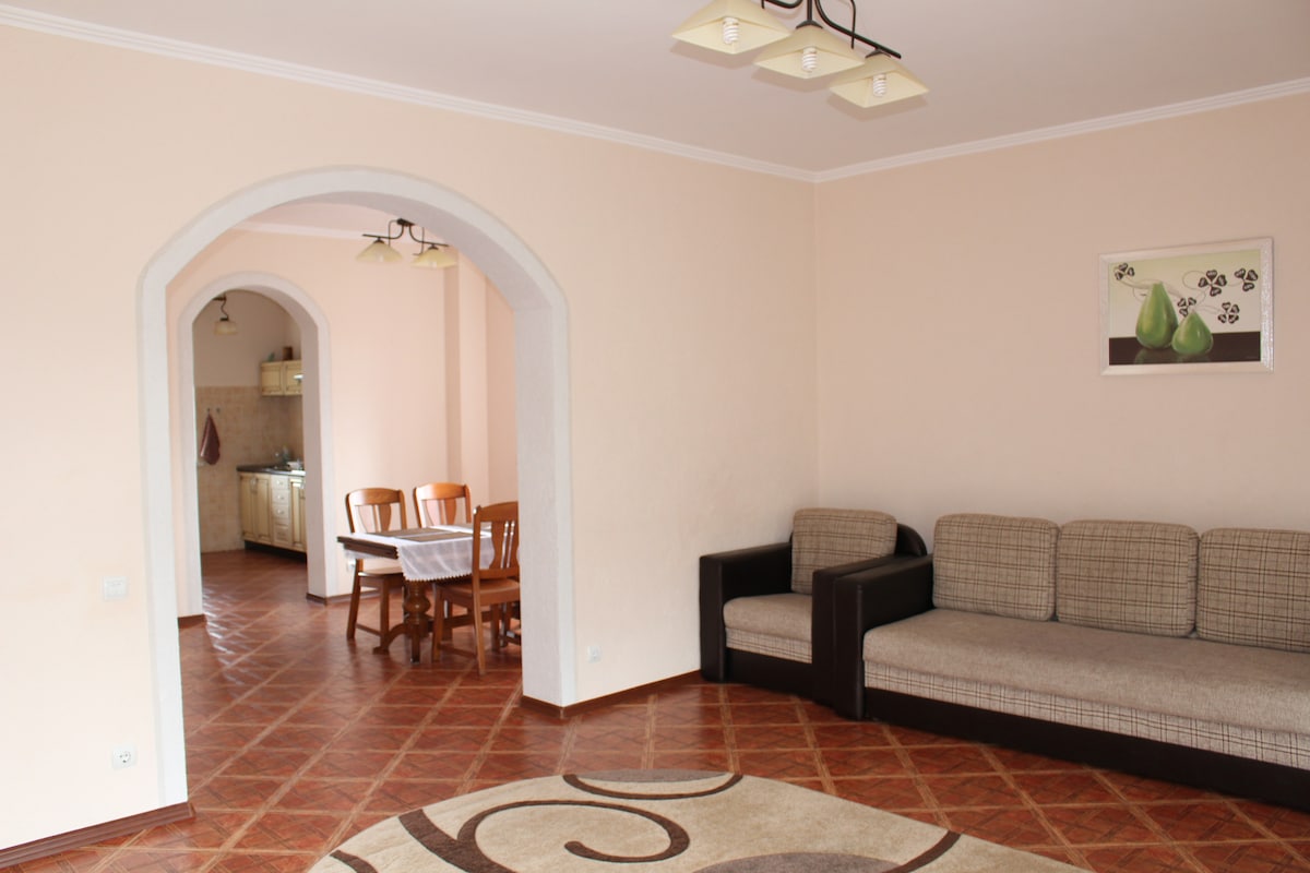 Sizi, muhteşem dağ manzarasına sahip huzurlu bir bölgede bulunan "Townhouse Panorama"da ağırlamayı dört gözle bekliyoruz. Aile tatilleri veya arkadaş grupları için mükemmeldir. - Konforlu ve ferah odalar. - Svalyava tren istasyonuna sadece 15 dakika mesafede. - Yakınlarda birçok restoran ve mağaza var. - Bölgede ziyaret edilecek ilginç yerler - Yeni başlayanlar için kayak merkezi sadece 5 km uzaklıktadır.