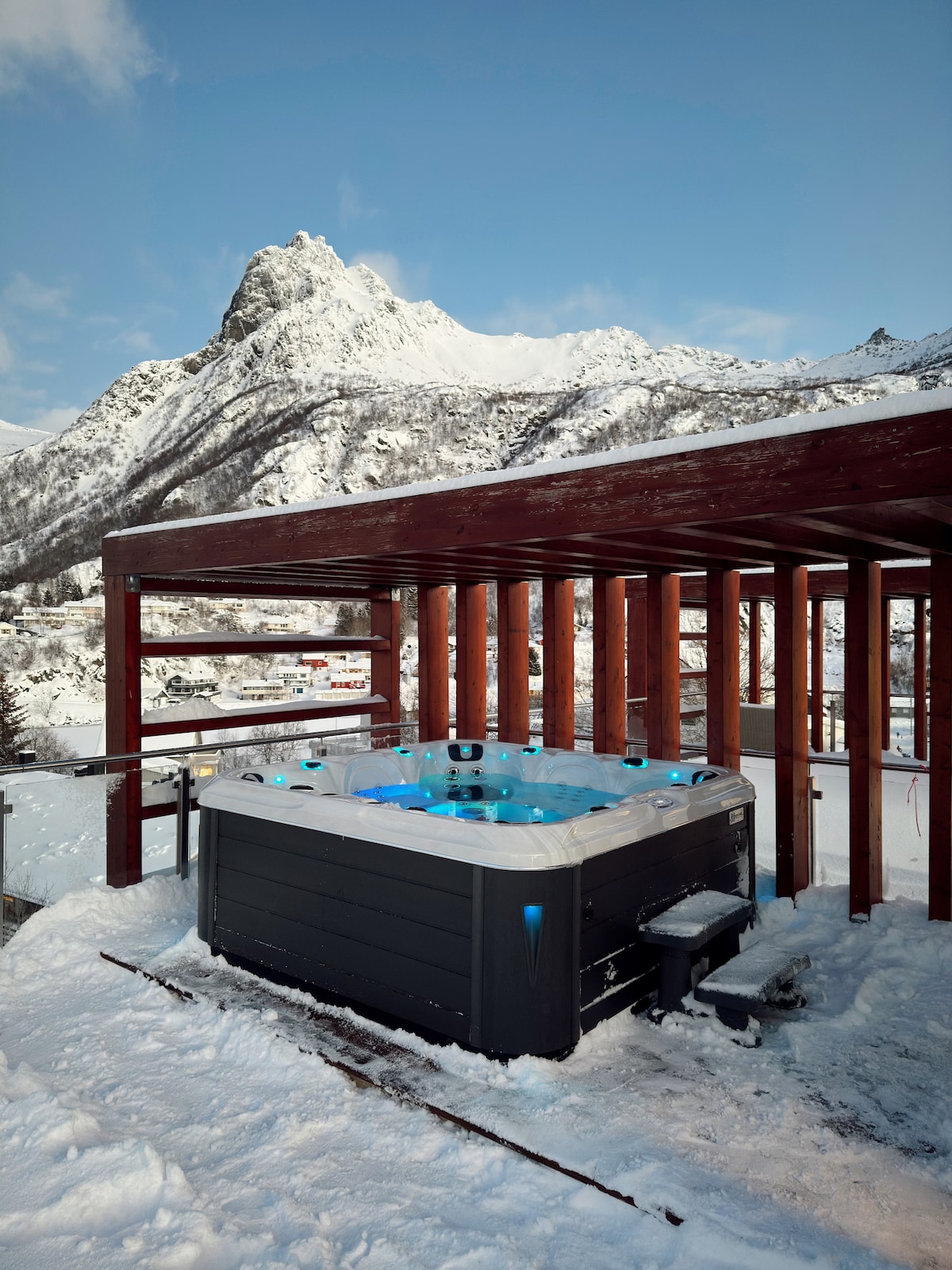 Lofoten'de jakuzi ve sauna ile muhteşem bir kulübe