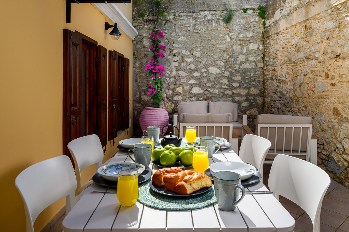 Pitoresk Chorio köyünün kalbinde yer alan bu konforlu geleneksel evde, tamamen restore edilmiş, farklı bir ortam ve huzur. Kolay erişilebilir ve yakınında park yeri bulunmaktadır. En yakın plaj evden 1,2 km uzaklıktadır ve adanın tüm yerlerine olduğu gibi küçük otobüslerle hizmet vermektedir. Servis botları ile diğer plajlara ulaşım kolaydır.