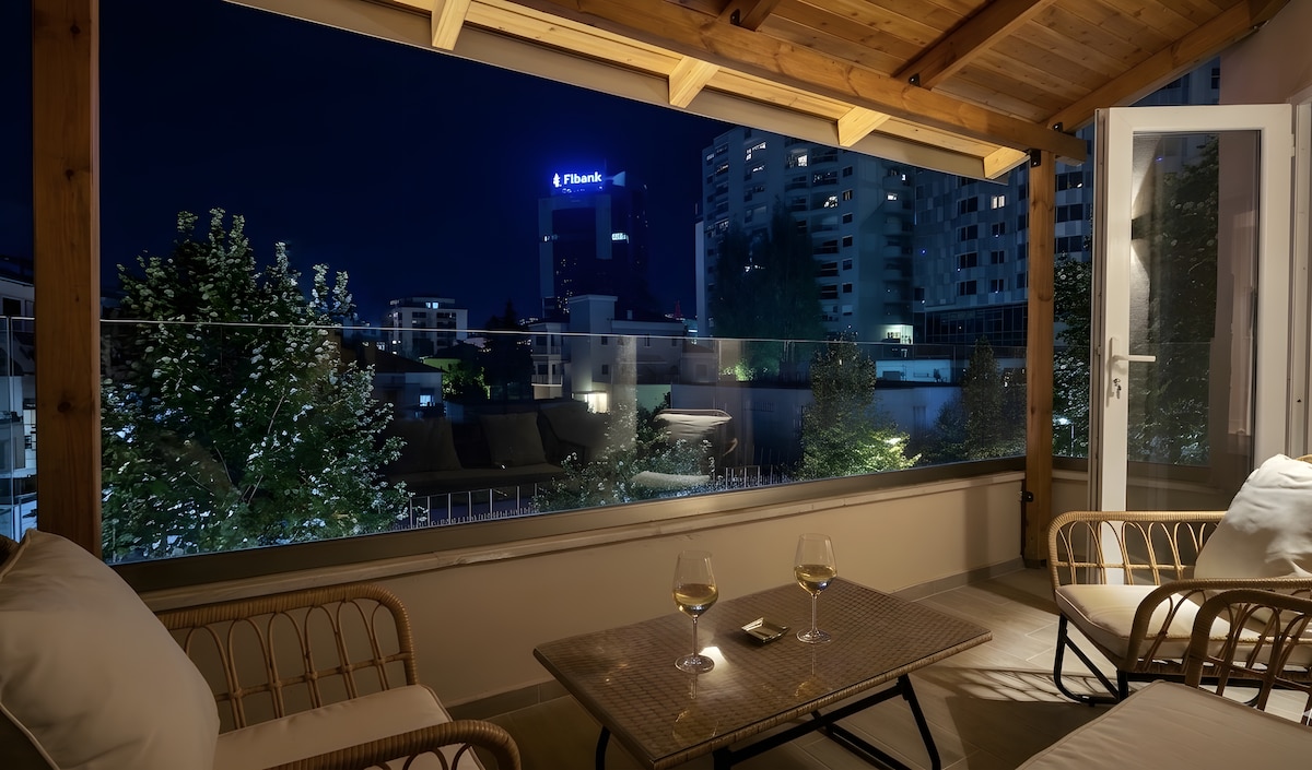 Tiran'a bakan 10. katta camdan bir piramitte kaldığınızı hayal edin. Tüm kat sizindir! Tamamen mahremiyetin ve keyfini çıkarabileceğiniz güzel açık alan manzarasının tadını çıkarabileceğiniz, camdan piramit şeklinde yapılmış, konforlu bir çatı katında zaman geçirin. Dairenin salıncaklı büyük bir balkonu, açık havada oturma alanı ve muhteşem manzarası var. Cam piramit, Tiran'ın ortasında, popüler alışveriş caddesi Myslym Shyri'nin yanında ve genç, ünlü ish - blloku bölgesine 5 dakika mesafededir. Benzersiz bir deneyim için gelin!