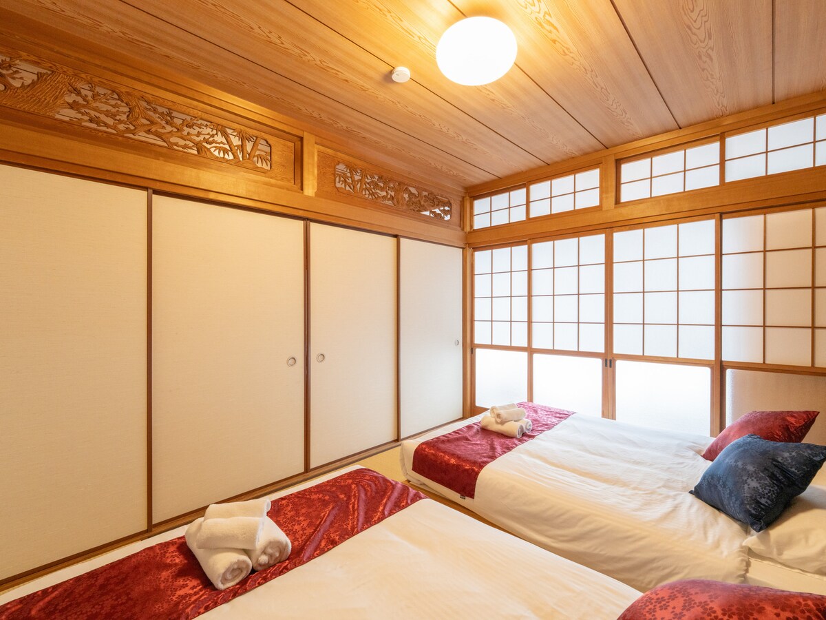 Saga İstasyonu'na arabayla sadece 6 dakika mesafede bulunan bu geleneksel tarzdaki özel ev, aileler ve gruplar için ideal olan sessiz bir yerleşim alanında 6 misafire kadar dinlendirici bir konaklama sunuyor. İç mekân, sıcak ahşap unsurlar ve şoji perdelerinden süzülen yumuşak ışıkla sakinleştirici bir Japon atmosferi yayıyor. Mekânda ücretsiz park yeri mevcuttur, bu da arabayla kolay erişim sağlar. Saga'nın doğa ve kültürünün cazibesiyle çevrili bu Japon tarzı inzivada dinlenin ve gevşeyin.