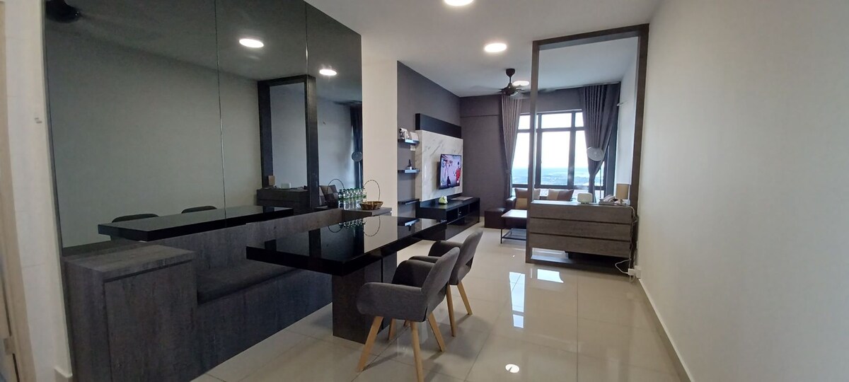Welcome our cozy minimalist style 5pax 3bedroom !! ❤️Midori Green is located at Austin Heights area which can find a lot of entertainment place like famous restaurants, cafes, karaoke , bar & bistro , massage center and others a lot of entertainment at nearby !! 🛍️It is very suitable for families, groups of friends, business travelers and tourist🌻 Enjoy picturesque views, a cozy living room, dining area, well-equipped kitchen, comfortable bedrooms, and a balcony with stunning Mount Austin views⛳️