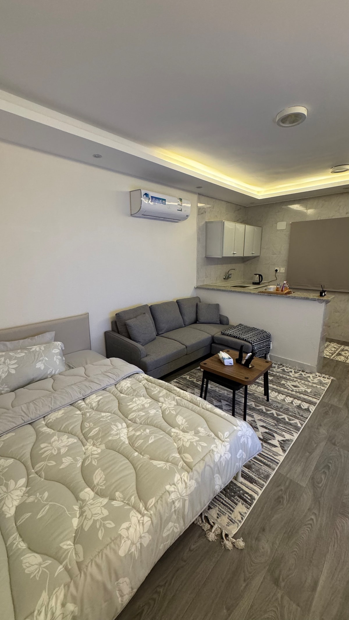 أهلاً وسهلاً.. -المساحة عملية ومجهزة بكل الأساسيات: جلسه هادئه بتلفاز ذكي، WIFI مجاني، غرفة نوم مع سرير فندقي مريح، مطبخ صغير يحتوي على الأدوات الضرورية، ودورة مياه. -التصميم بسيط ومرتب، ويوفر جوًا يساعد على الإسترخاء بعد يوم من التجول أو العمل. -الموقع يسهل الوصول منه إلى أماكن مهمة في المدينة، سواء كنت تزور بغرض العمل أو السياحة. -يمنع التدخين وإقامة الحفلات ❌ أحرص دائمًا على أن تكون الإقامه مريحه✨ لا تتردد بتقديم أي إستفسارات🤍