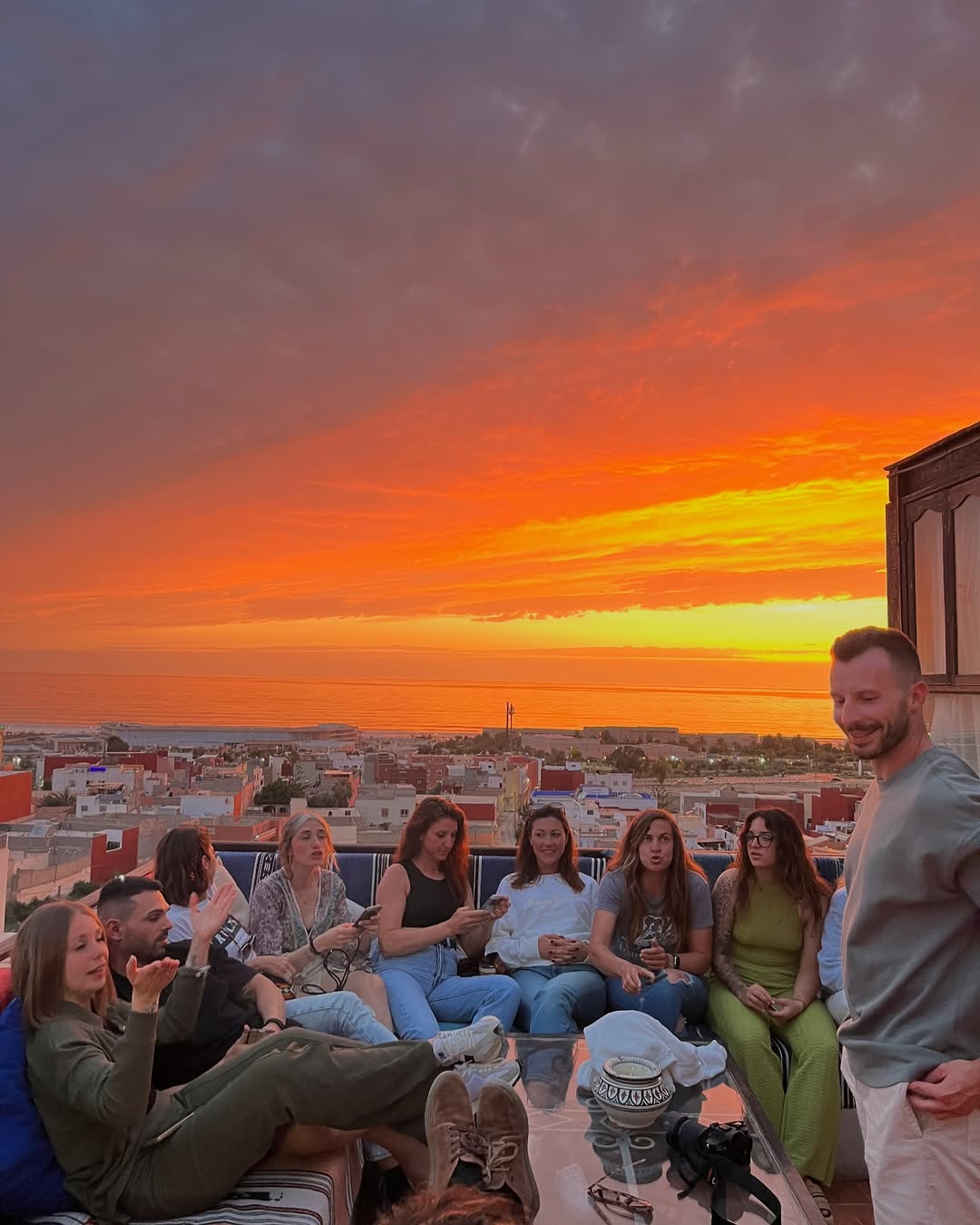 16 kişilik bir grupsanız ve tüm hosteli rezerve etmek istiyorsanız bu sizin için harika bir fırsattır. İkinci evinize hoş geldiniz: Tamraght köyünde Fas kıyısında bir sörf ve yoga hosteli. Agadir şehrinin 15 km kuzeyinde ve plaja 10 ila 15 dakika yürüme mesafesindedir. Konaklamak için rahat bir yer. Çatı terasında sağlıklı ve lezzetli kahvaltı servis edilir. Yerel bilgili ekibimiz size yardımcı olmak için burada