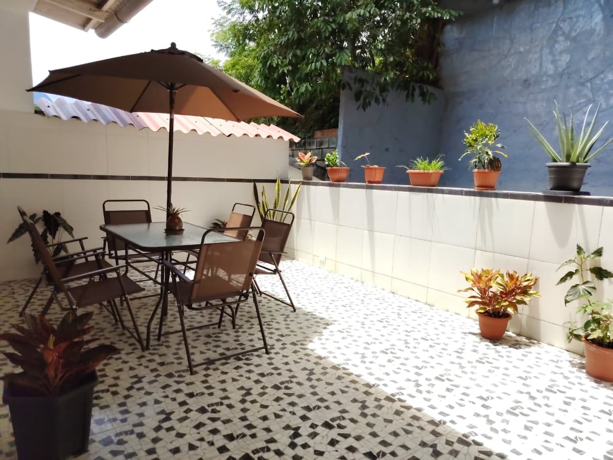 Misafir için özel ve özel daire, 1. kat, müstakil giriş, doğal ışık, çekyatlı ve düz ekran akıllı TV'li rahat oturma odası; dört sandalyeli masa, klima; modern mutfak, 2 yataklı bir yatak odası, özel çalışma alanı, ana banyo; yarım banyo, ızgaralı teras, lavlı/kuru çamaşırhane. ¡Yüksek hızlı internet, otopark, havaalanına 10 dakika ve Tpp Meydanı'na 6 dakika. Unutulmaz bir deneyimin keyfini çıkarın.