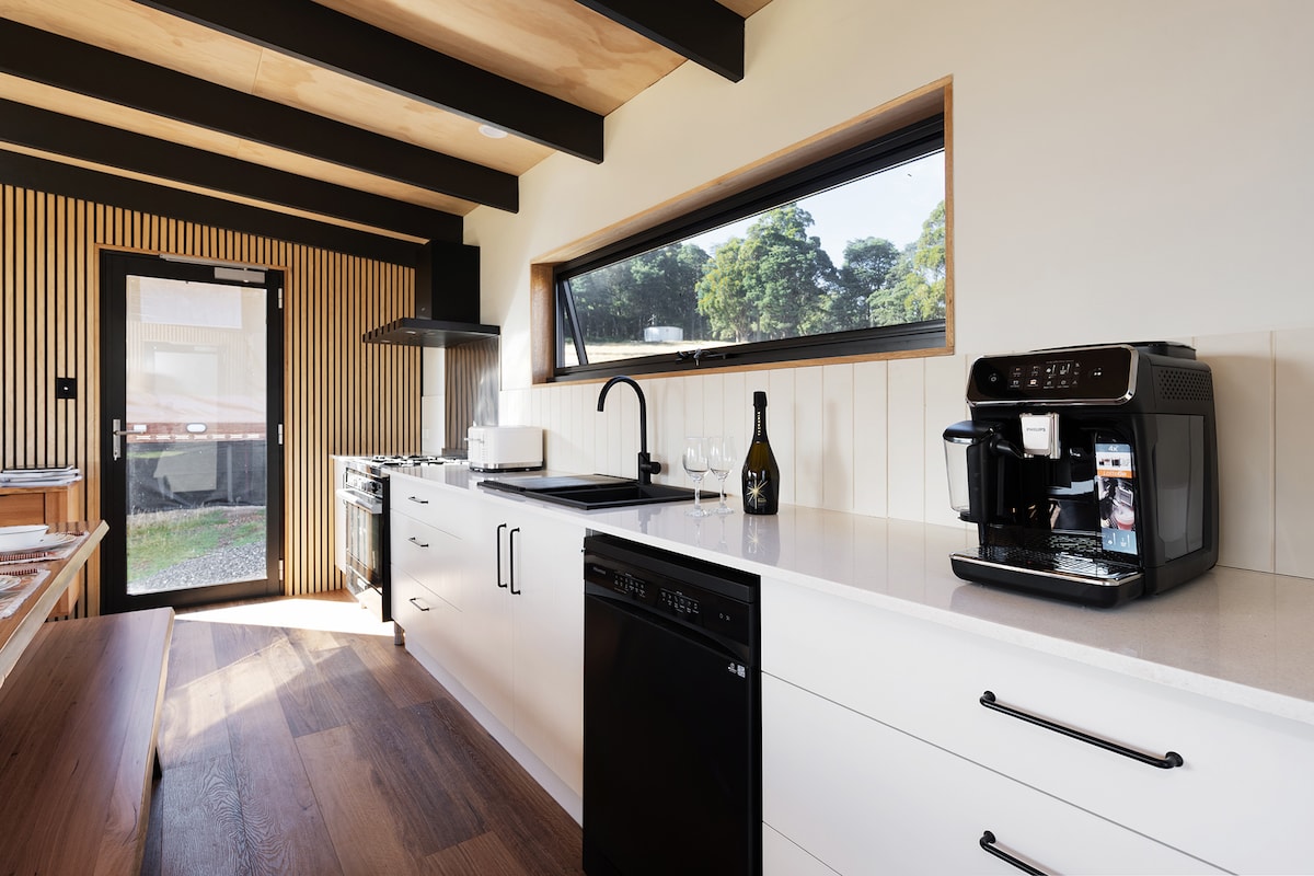 Tasmanya'nın kuzeyindeki 6 hektarlık üzüm bağında yer alan iki lüks kamp çadırından biri olan "Barrel"a kaçın. King boy yatak, ısıtmalı zeminli ebeveyn banyosu, odun ateşli jakuzi ve geniş bir verandada Weber barbekü. Misafirler, kısa bir yürüyüş mesafesindeki Meander Valley Vineyard şarap mahzenini ziyaret etmeye davet edilir. Şarap tadımı ve odun ateşinde pişmiş pizzanın tadını çıkarın, hepsi asmaların manzarası eşliğinde. Rahatlayabileceğiniz bir ortak kaçamak için her iki çadırı da rezerve edin. Asmalar arasında ruhani bir konaklama, çiftler veya arkadaşlar için mükemmel.
