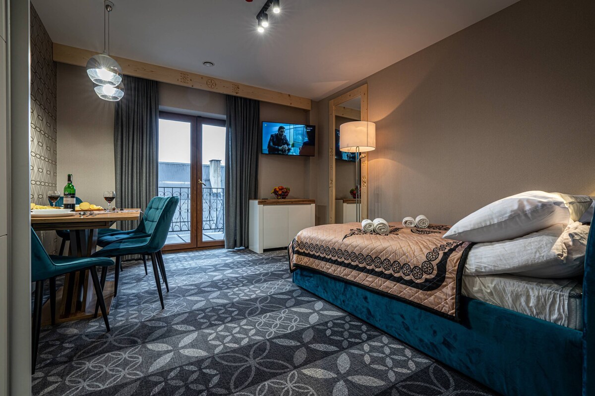 Şömineli, jakuzili ve Tatra Dağlarına bakan balkonlu daire çiftler için ideal bir tekliftir. Süit, çift kişilik yatak, mini bar, şömine ve özel jakuzili lüks donanımlara ve mobilyalara sahiptir. Balkondan Tatraların güzel bir manzarası var. Nesne, Tatra Ulusal Parkı sınırlarına 500 metre uzaklıktaki kayak asansörleri ve Tatra parkurlarının yakınında yer alıyor. Villanın hemen yanında toplu taşıma durağı bulunmaktadır.