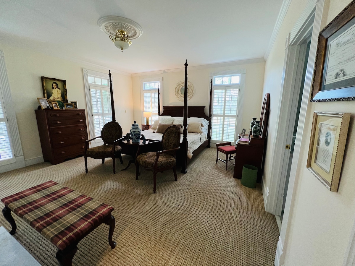 This listing is for the first floor of the house. One bedroom with king bed. Full bathroom and half bath on first floor. I also have both floors for rent in another listing.