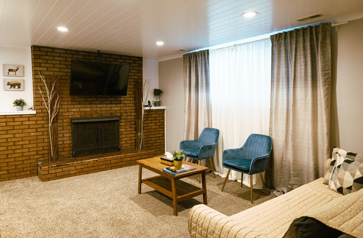 Rahat bodrum süiti | Ücretsiz çamaşırhane + oyun alanı