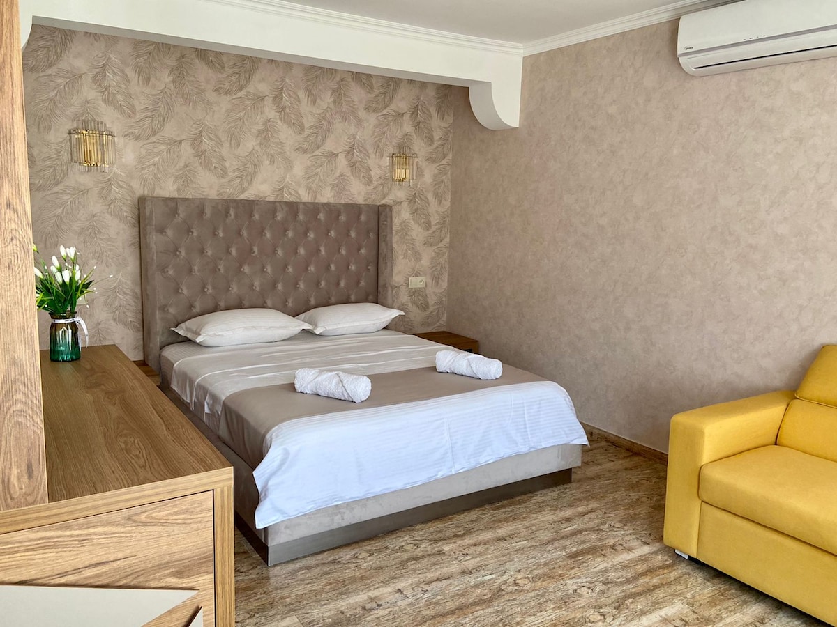 Otel tipi stüdyo odalar, (ortak mutfak) Tiflis'in en iyi merkezi konumu, dairenin altında birçok mağaza, restoran ve kafenin bulunduğu Marjanishvili bölgesinin göbeğindedir. En yakın metro/metro durağı 5 dakika yürüme mesafesindedir, Marjanishvili durağı En yakın otobüs durağı 2 dakika yürüme mesafesindedir. 1. Ana yatak odasının bulunduğu her yere yürüyebilirsiniz : 1 çift kişilik yatak ( banyo ) Her odanın kendi buzdolabı, kattle, banyo, temizlik hizmeti +5 USD nakit kahvaltı vardır.