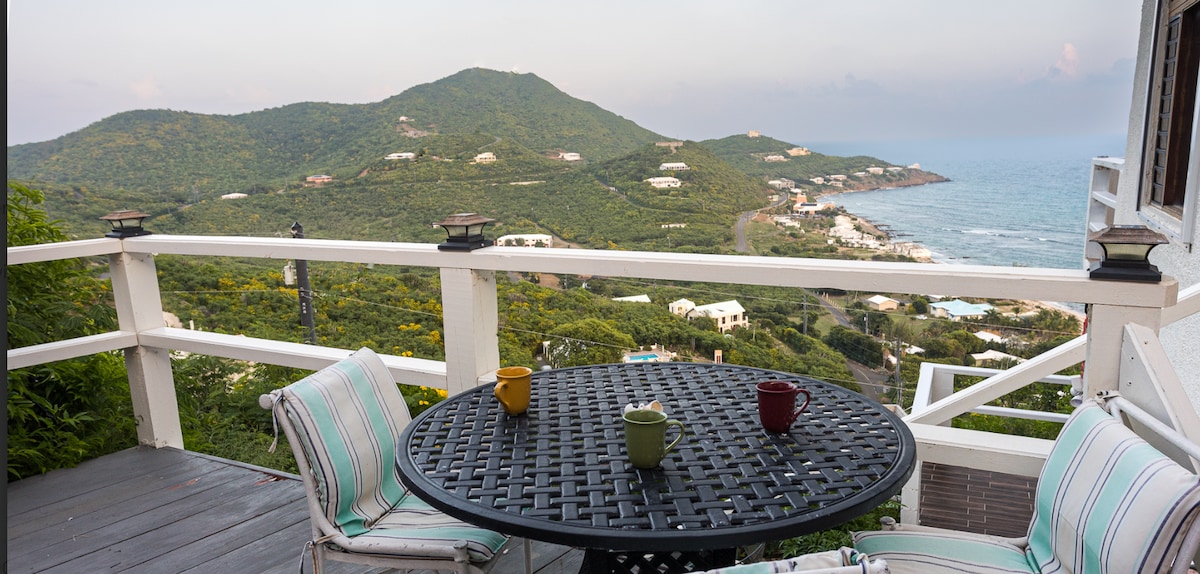 STX'teki en güzel konutlardan biri, muhteşem bir manzaraya ve kapıdan sadece birkaç adım uzaklıktaki kendi plajınıza doğrudan erişime sahiptir. Burası tatil yapmak, uzaktan çalışmak veya sadece uzaklaşmak için mükemmel bir yerdir. Özel balkonlu 1 yatak odalı konut. Klima, çamaşır makinesi/kurutucu ve tam donanımlı bir mutfak. Okyanus, Christiansted limanı ve Buck Adası'nın muhteşem manzarasına izin verirken tam bir mahremiyet. Özel havuz ve plaj. Uygun konum. Ücretsiz kablosuz internet bağlantısı, uydu TV ve DVD oynatıcı.