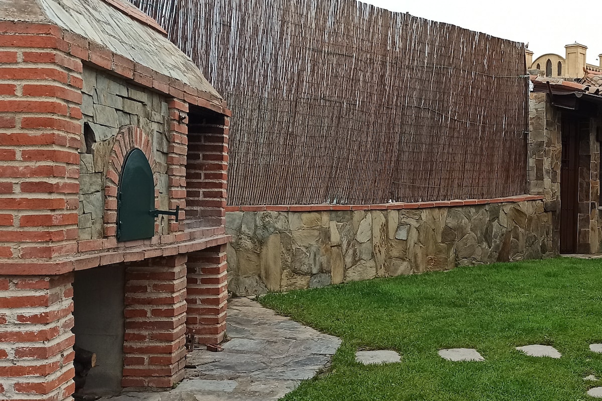 Casa independiente ideal para parejas y pequeñas familias. Aparcamiento y jardín privado, no compartido, porche y barbacoa No es una habitación, es un precioso cottage. Salón de concepto abierto. Zona de estar orientada a la chimenea de leña y smart TV, comedor con cocina integrada, baño completo, doble lavabo y precioso dormitorio con cama XXL. Próxima a la salida 375 de la A66. Descanso ideal entre el norte y sur Consulta si vienes con mascota. La piscina a 100 metros y es comunitaria