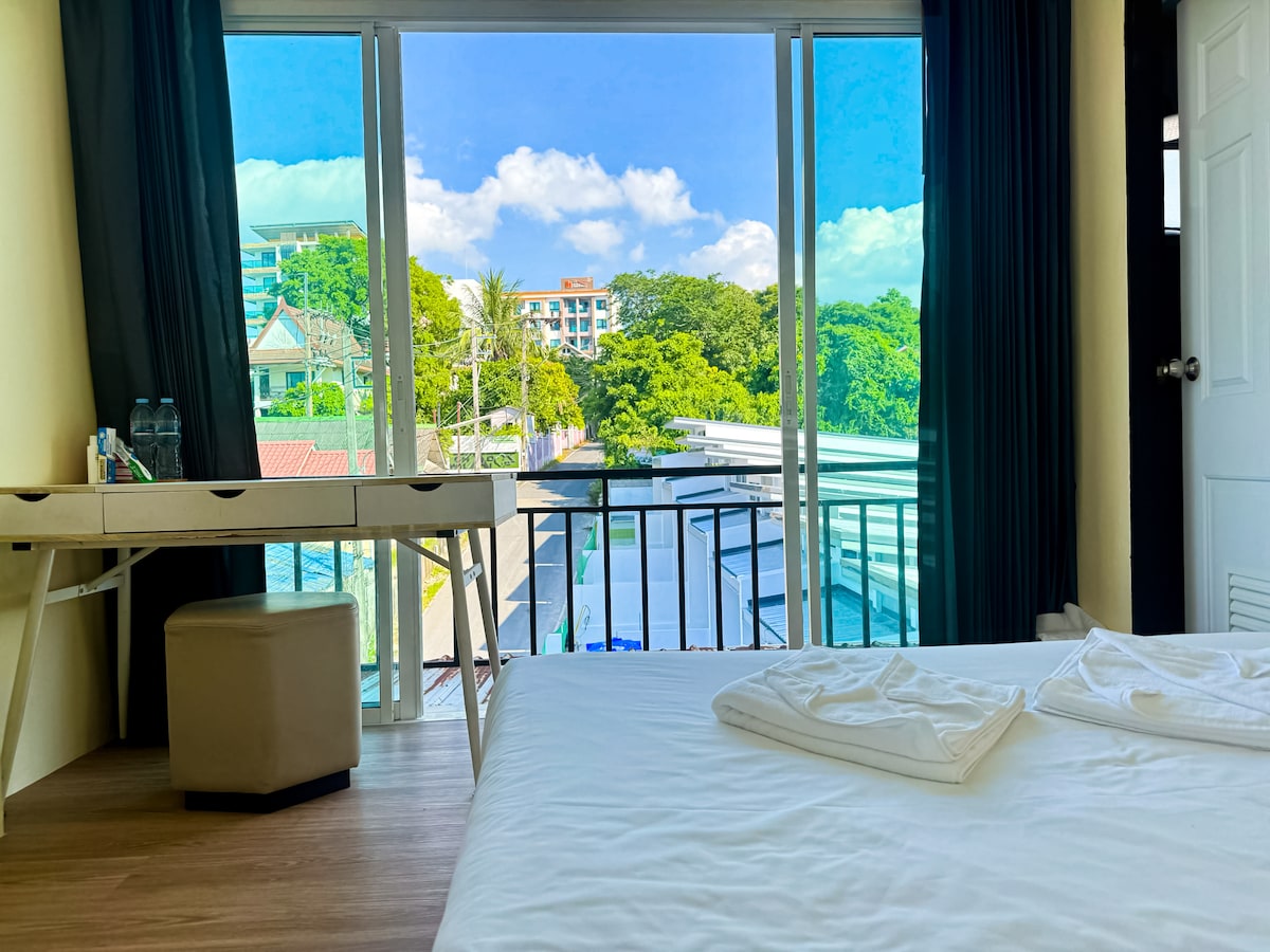 Kahvaltı dahil Kontinental kahvaltı, kızarmış ekmek, tereyağı, reçel ve 1 kahve veya 1 çay gibi sıcak bir içecekten oluşan basit bir sabah yemeğidir! Oda terasından havuzun harika manzarası (jakuzi) teraslı tropikal bitkili iç bahçe. bekarlar, çiftler ve aileler için hoş, geleneksel Tay ve modern bir ortamda ucuz yaşamanın ideal bir kombinasyonudur.